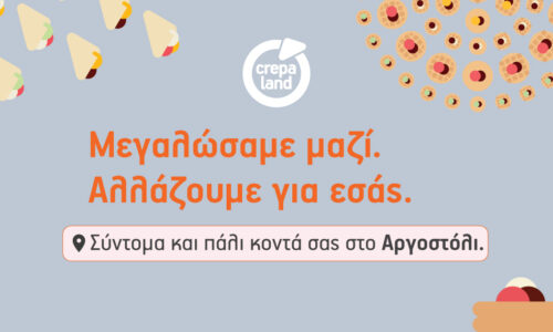 Αγαπητοί Κεφαλονίτες και Κεφαλονίτισσες, Η ιστορία της Crepaland είναι άρρηκτα συνδεδεμένη με την Κεφαλονιά. Από το 1998, όταν η μικρή κρεπερί στο Αργοστόλι έκανε την εμφάνισή της, έως και σήμερα, το κατάστημά μας αποτελεί το σημείο αναφοράς για τους λάτρεις της ποιότητας και της γεύσης στο νησί. Μετά από 28 χρόνια επιτυχημένης πορείας, το κατάστημα της Crepaland στο Αργοστόλι εισέρχεται...