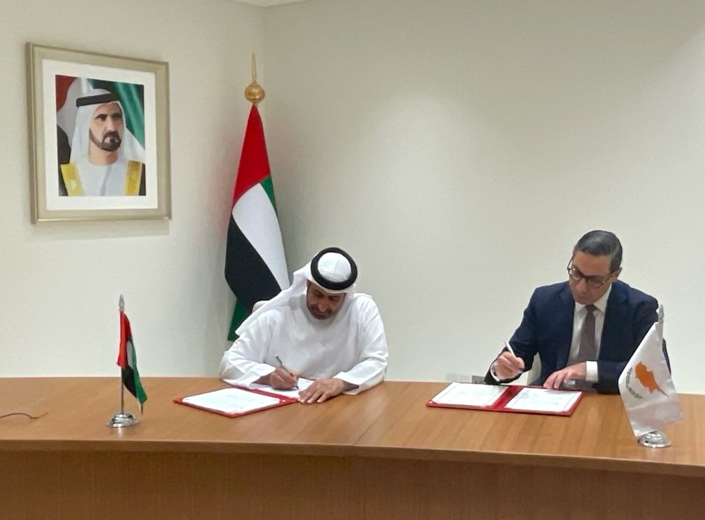 Ο Υπουργός Εξωτερικών Κωνσταντίνος Κόμπος υπέγραψε σήμερα στο Ντουμπάι διμερή διευθέτηση με τον βοηθό υπουργό για Θέματα Ανάπτυξης και Διεθνών Οργανισμών των Ηνωμένων Αραβικών Εμιράτων Σουλτάν αλ Σάμσι για την μεταφορά κινητών μονάδων αφαλάτωσης στην Κύπρο.