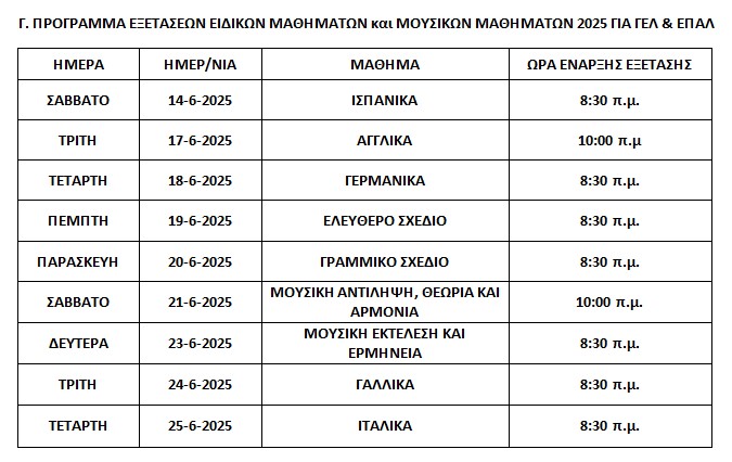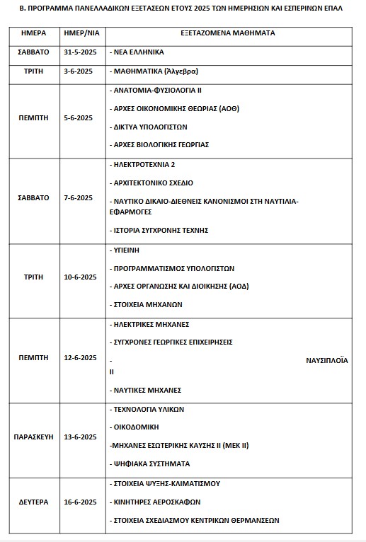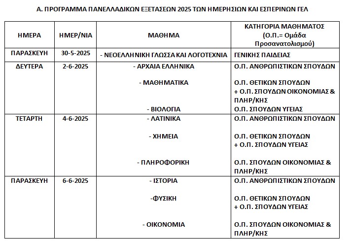 Από το Υπουργείο Παιδείας, Θρησκευμάτων και Αθλητισμού ανακοινώνεται το πλήρες πρόγραμμα των Πανελλαδικών Εξετάσεων έτους 2025: