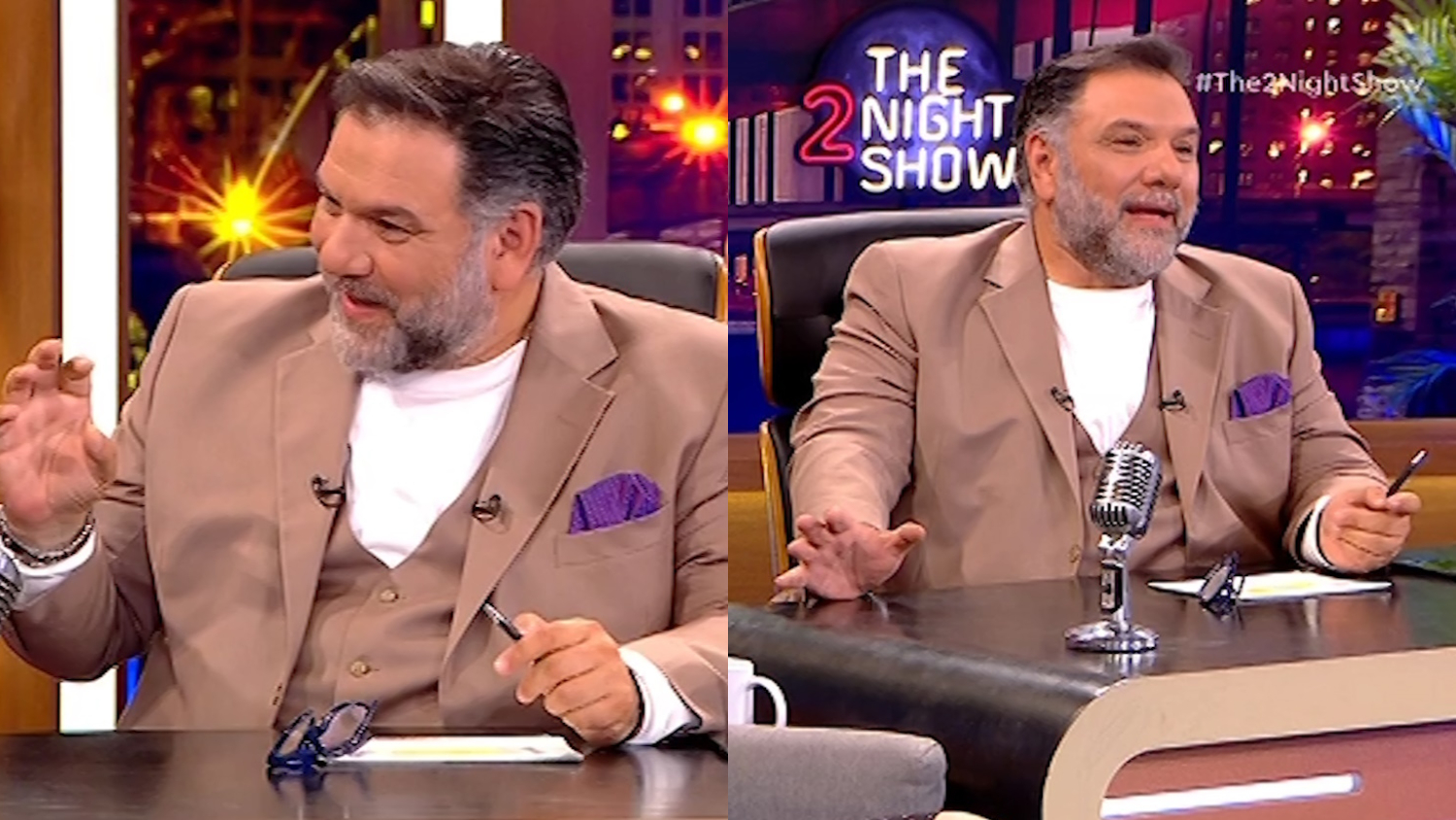 «Είχα να δω τόσο όμορφο πρόσωπο πάρα πολύ καιρό. Αλήθεια το λέω. Κύριε Λέπουρα, μπορούμε να κάνουμε ένα κοντινό, παρακαλώ, από αυτά τα ωραία; Όσο μπορείτε πιο κοντινό, παρακαλώ», είπε στο ξεκίνημα της συνέντευξης ο Γρηγόρης Αρναούτογλου.