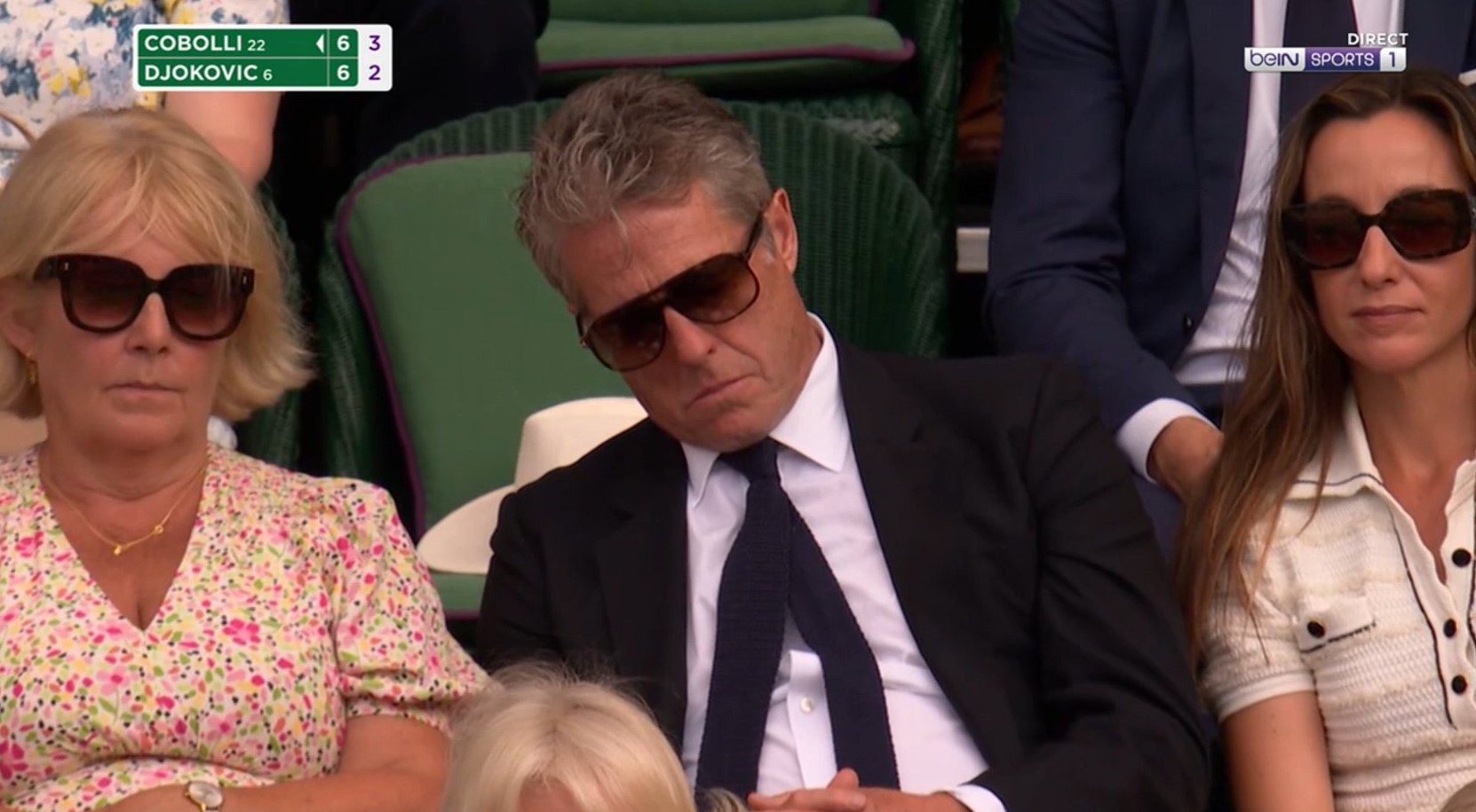 Hugh Grant seemingly caught sleeping during Novak Djokovic’s Wimbledon match https://t.co/E9bJCTUcSt pic.twitter.com/oAxpiTEtvf