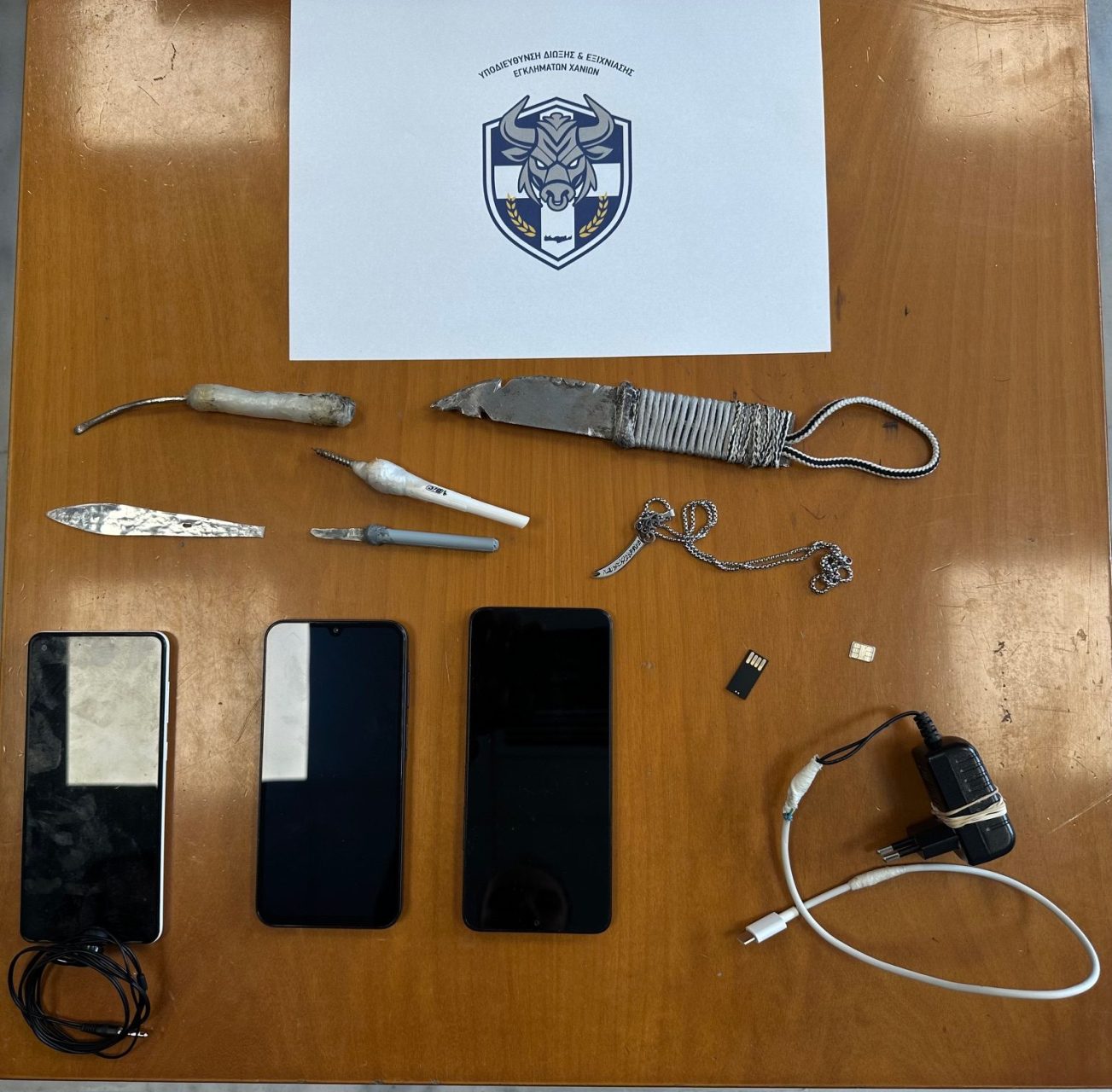 «στα πλαίσια συντονισμένης επιχείρησης που πραγματοποιήθηκε χθες (02.05.2025) σε Σωφρονιστικό Κατάστημα Κράτησης Χανίων, από αστυνομικούς της Υποδιεύθυνσης Δίωξης και Εξιχνίασης Εγκλημάτων Χανίων, με τη συνδρομή αστυνομικών της Ομάδας Πρόληψης και Καταστολής Εγκλήματος Χανίων, του Τμήματος Αστυνομικών Επιχειρήσεων Χανίων και του σκύλου ανιχνευτή ναρκωτικών ουσιών, παρουσία δικαστικού λειτουργού, πραγματοποιήθηκαν έρευνες σε επτά (7) κελιά όπου διέμεναν έντεκα (11) κρατούμενοι.