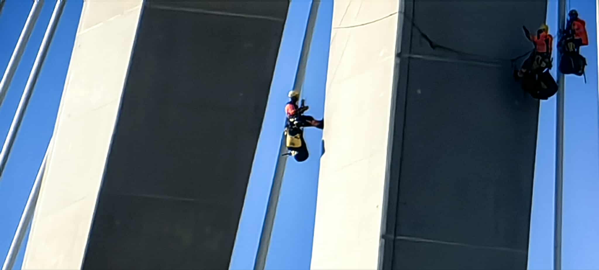 Αλπινιστές επιθεωρούν τη γέφυρα Ρίου Αντιρρίου – Εικόνες που κόβουν την ανάσα