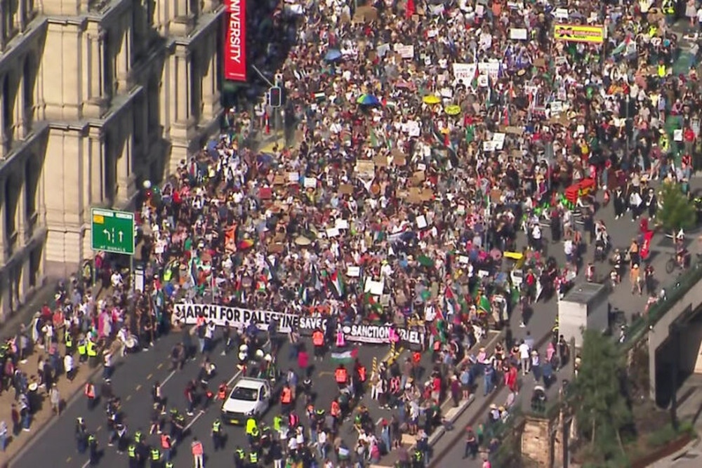 Φιλοπαλαιστινιακές διαδηλώσεις πραγματοποιήθηκαν σήμερα σε πολλές πόλεις της Αυστραλίας, με τους διοργανωτές να εκτιμούν πως ο αριθμός των συμμετεχόντων ανέρχεται σε δεκάδες χιλιάδες, το οποίο αντιστοιχεί στην εικόνα που παρουσιάζουν σχετικά τα Αυστραλιανά ΜΜΕ από το πρωί και έως το μεσημέρι της Κυριακής.