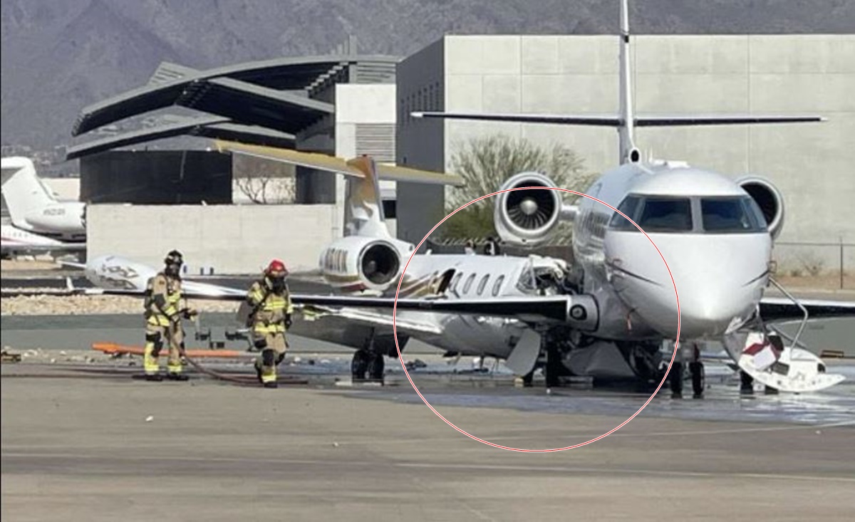Vince Neil’s (Motley Crue lead singer) plane hit actor Vince Vaughn’s parked plane today at Scottsdale Airport in Arizona shutting down the runway.