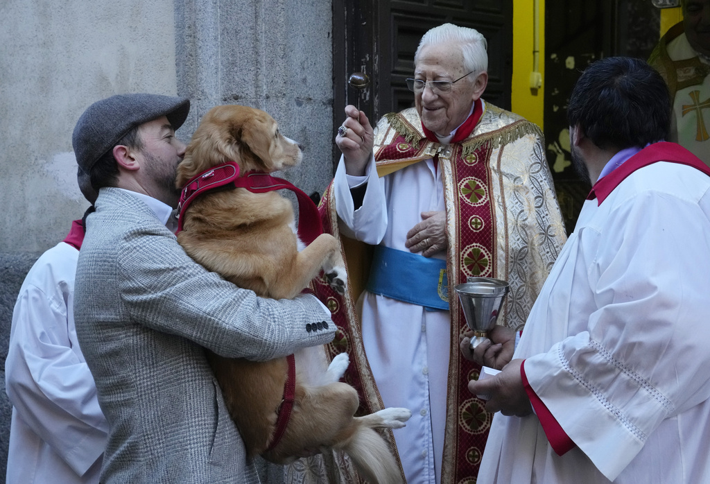 Δεκάδες σκύλοι και γάτες, μερικοί παπαγάλοι και μια κότα περίμεναν υπομονετικά σήμερα, δίπλα στους ιδιοκτήτες τους, έξω από μια εκκλησία της Μαδρίτης για να πάρουν την ευλογία της Εκκλησίας, σε μια παραδοσιακή τελετή που διεξάγεται κάθε χρόνο.