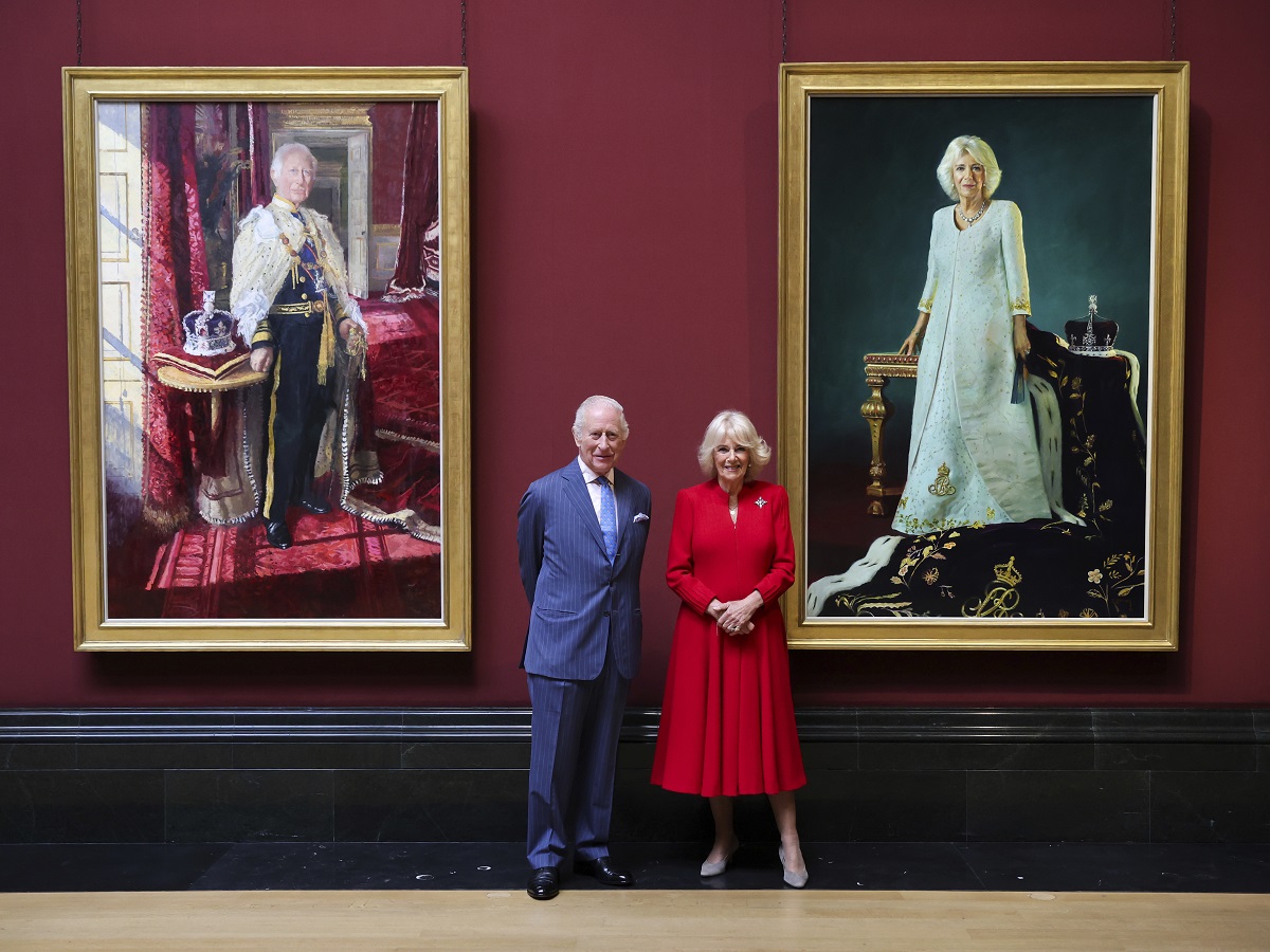 «Για να σηματοδοτηθεί η δεύτερη επέτειος της στέψης των Αυτού Μεγαλειοτήτων, αποκαλύφθηκαν δύο κρατικά πορτρέτα του Βασιλιά Καρόλου Γ΄ και της Βασίλισσας Καμίλα στην κεντρική αίθουσα της Εθνικής Πινακοθήκης», αναφέρει η επίσημη ιστοσελίδα της Βασιλικής Οικογένειας.