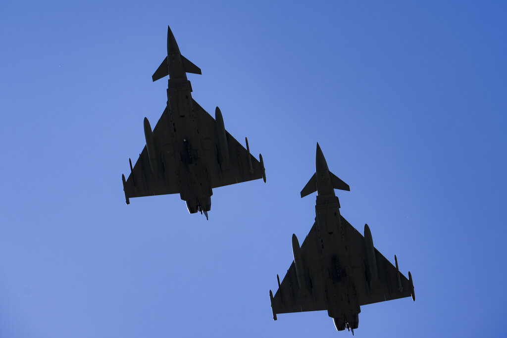 Η Βρετανία ανακοίνωσε σήμερα πως δύο αεροσκάφη της Βασιλικής Πολεμικής Αεροπορίας πέταξαν σε μια 12ωρη αποστολή νωρίτερα αυτήν την εβδομάδα μαζί με δυνάμεις των ΗΠΑ και του ΝΑΤΟ πραγματοποιώντας περιπολία στα σύνορα της Ρωσίας, με φόντο τις πρόσφατες διεισδύσεις από ρωσικά ντρόουν και αεροσκάφη στον εναέριο χώρο του ΝΑΤΟ.