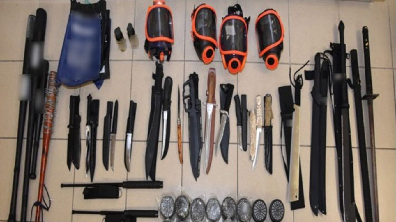– 14 μαχαίρια, μεταξύ αυτών τρεις ματσέτες, ένας μπαλτάς και μία ανταλλακτική λάμα