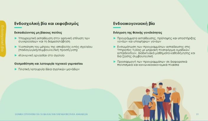 «Το όραμα είναι τα παιδιά να μεγαλώνουν σε μια κοινωνία απαλλαγμένη από φόβο» υπογράμμισε μεταξύ άλλων η επικεφαλής της ομάδας που τον τελευταίο χρόνο μελέτησε τρόπους αντιμετώπισης της Βίας και Παραβατικότητας Ανηλίκων, Βάσω Αρτινοπούλου, ενώ επεσήμανε πως «δεν είναι φυσιολογικό να ζεις με τη βία, η βία δεν πρέπει να είναι ο κανόνας αλλά η εξαίρεση» κάνοντας λόγο για αλλαγή οπτικής προκειμένου να ελθει η αντιμετώπιση του φαινομένου.
