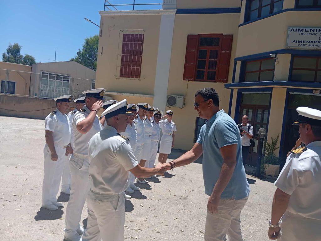 Τον υπουργό, ο οποίος συνοδευόταν από τον Β’ υπαρχηγό του Λ.Σ – ΕΛ.ΑΚΤ., υποναύαρχο Λ.Σ. Φώτιο Κιάμο, υποδέχθηκαν ο διοικητής της 8ης Περιφερειακής Διοίκησης Λ.Σ. – ΕΛ.ΑΚΤ., πλοίαρχος Λ.Σ. Δημήτριος Ζαραζάνης και ο λιμενάρχης του Λιμεναρχείου Λέρου, αντιπλοίαρχος Λ.Σ. Χρήστος Ανδριάνης, με τους οποίους μετέβη για επιθεώρηση στα περιπολικά σκάφη του Λ.Σ-ΕΛ.ΑΚΤ. που ελλιμενίζονται στον λιμένα Λακκί. Εκεί, συνεχάρη τα πληρώματα για τη διαρκή ετοιμότητά τους, τον επαγγελματισμό τους, την προσήλωσή τους στο καθήκον, την αυταπάρνηση και τον ζήλο που επιδεικνύουν καθημερινά, με γνώμονα την προστασία της ανθρώπινης ζωής στη θάλασσα και την προάσπιση των θαλασσίων συνόρων της πατρίδας.