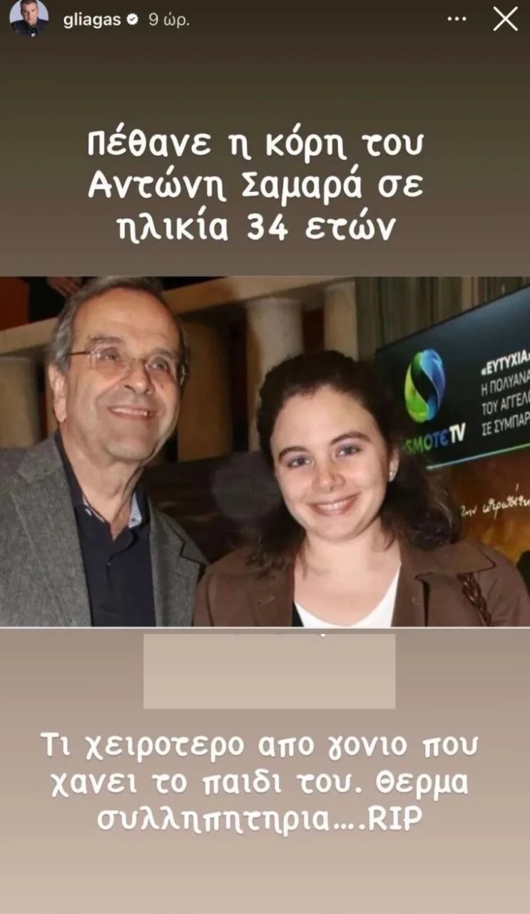 Το προσωπικό δράμα του πρώην πρωθυπουργού έγινε αφορμή να ενωθούν πολιτικοί από όλα τα κόμματα στην έκφραση συμπαράστασης. Παράλληλα, μηνύματα συμπαράστασης έστειλαν και πολλοί δημοσιογράφοι. Ιδιαίτερα συγκινητική ήταν η ανάρτηση του Γιώργου Λιάγκα, παρουσιαστή του ΑΝΤ1, ο οποίος στο προσωπικό του λογαριασμό στο Instagram σχολίασε: «Τι χειρότερο από γονιό που χάνει το παιδί του. Θερμά συλλυπητήρια. Rest in Peace».