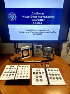 Από την Υποδιεύθυνση Καταπολέμησης Διακίνησης και Εμπορίας Ανθρώπων και Αγαθών της Διεύθυνσης Αντιμετώπισης Οργανωμένου Εγκλήματος συνελήφθησαν πρωινές ώρες χθες, Πέμπτη 8 Μαΐου 2025, στην περιοχή του Αλίμου Αττικής, δύο άτομα, που εμπλέκονται σε υπόθεση παράνομης αγοραπωλησίας αρχαιοτήτων.