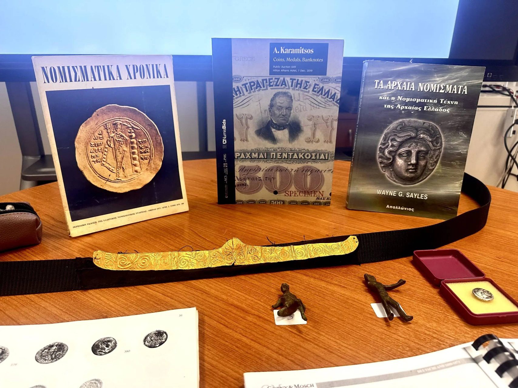 Ειδικότερα, είχαν προγραμματίσει την πώληση αρχαίου νομίσματος, δύο χάλκινων αρχαίων αγαλματιδίων και χρυσού αρχαίου διαδήματος.