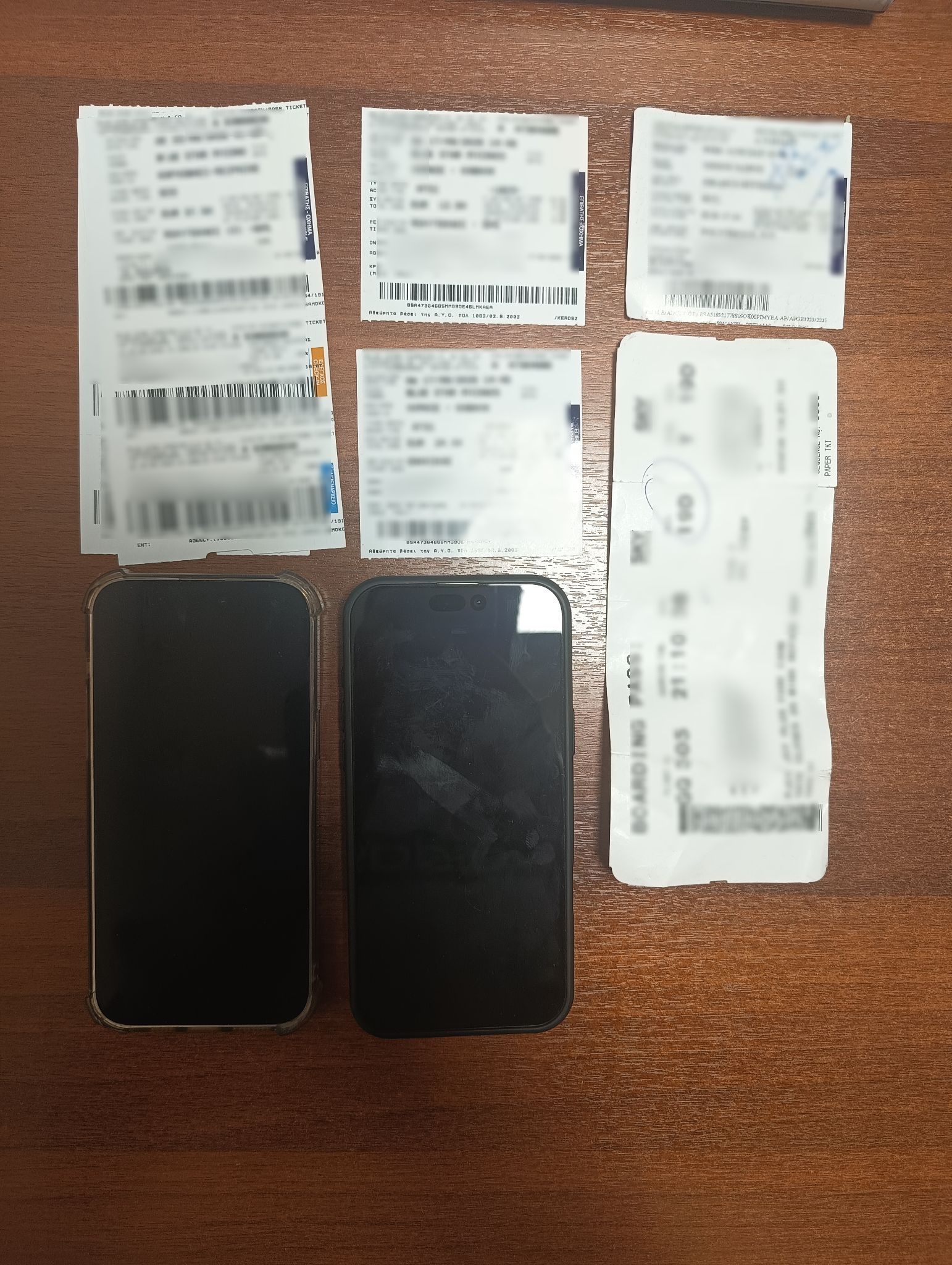 Κατασχεθήκαν ακόμη, -2- κινητά τηλέφωνα, ακτοπλοϊκά εισιτήρια, κάρτα επιβίβασης αεροπορικής πτήσης, καθώς και Ι.Χ. επιβατικό αυτοκίνητο, που χρησιμοποίησαν οι συλληφθέντες κατά το χρόνο τέλεσης των εκνόμων ενεργειών τους, στο νησί της Σάμου.