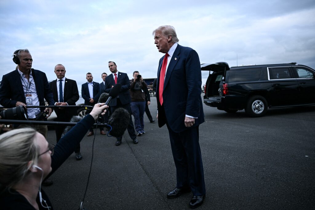 Το ιδιωτικό αεροσκάφος του Ντόναλντ Τραμπ προσγειώθηκε στο αεροδρόμιο του Πρέσγουικ (Prestwick) λίγο πριν τις 9 το βράδυ τοπική ώρα, όπου έγινε δεκτός από ομάδα συνεργατών του. Σε σύντομες δηλώσεις του προς τα μέσα, επιβεβαίωσε την πρόθεση να προωθήσει μια «μεγάλη» εμπορική συμφωνία μεταξύ ΗΠΑ και Ευρωπαϊκής Ένωσης, κάνοντας λόγο για «50-50 πιθανότητες», παρά τα 20 εναπομείναντα «αγκάθια» στις διαπραγματεύσεις.
