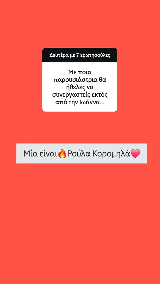 Το QnA που έκανε ο Λάμπρος Κωνσταντάρας στο Instagram είχε μια απρόσμενη παρέμβαση από ένα πρόσωπο που δεν θα περίμενα κανείς. Μια απάντηση που έδωσε ο γνωστός δημοσιογράφος σε follower του, προκάλεσε την ευχάριστη αντίδραση της Ρούλας Κορομηλα.