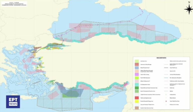 Σχέδιο για τα θαλάσσια πάρκα στο Αιγαίο και την Ανατολική Μεσόγειο, αποκλείοντας το Καστελόριζο στα χωρικά ύδατα των 6 ναυτικών μιλίων, εξέδωσε η Τουρκία λίγες ημέρες μέρες μετά τις ανακοινώσεις της Αθήνας.