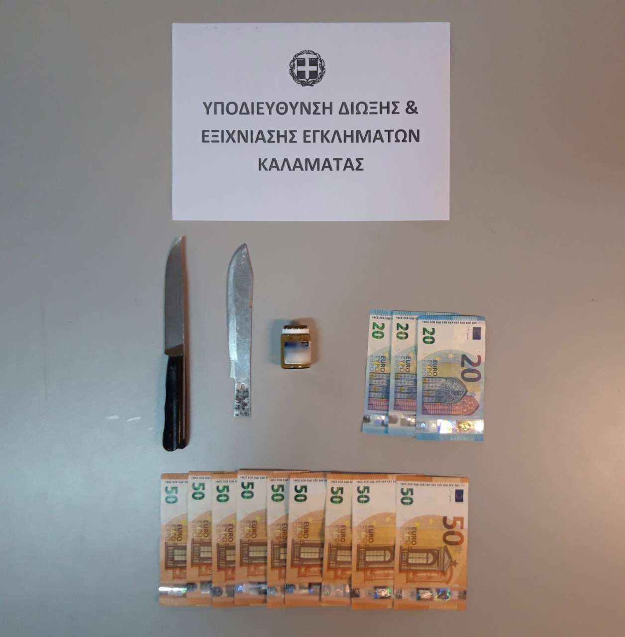 Λίγη ώρα αργότερα, αστυνομικοί της Υποδιεύθυνσης Δίωξης και Εξιχνίασης Εγκλημάτων Καλαμάτας, έπειτα από επισταμένες αναζητήσεις, τον εντόπισαν και ο δράστης απείλησε τους αστυνομικούς αυτή τη φορά με τη χρήση μαχαιριού και αντιστάθηκε στη σύλληψη του. Ωστόσο, οι αστυνομικοί κατάφεραν και τον ακινητοποίησαν και στη συνέχεια συνελήφθη.