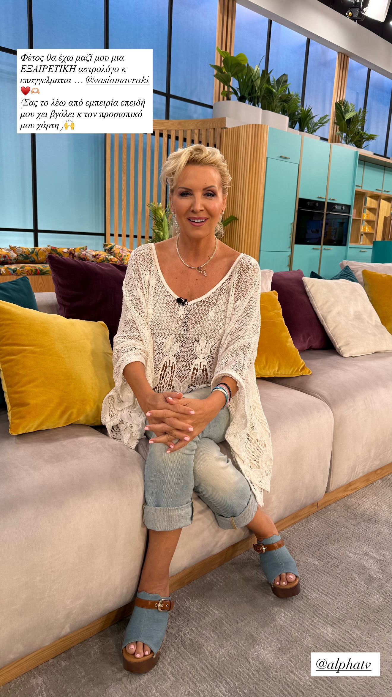 Μάλιστα, σε μία από τις αναρτήσεις μάς συστήνει και τη νέα αστρολόγο της εκπομπής Βάσια Μαυράκη επισημαίνοντας: «Φέτος, θα έχω μαζί μου μία εξαιρετική αστρολόγο και επαγγελματία. (Σας το λέω από εμπειρία επειδή μου ΄χει βγάλει τον προσωπικό μου χάρτη)».