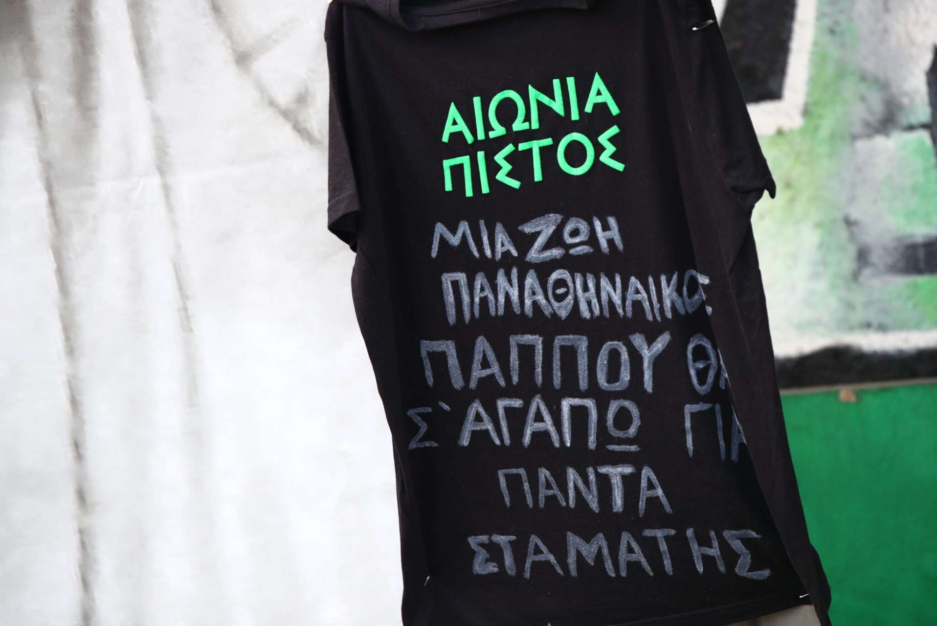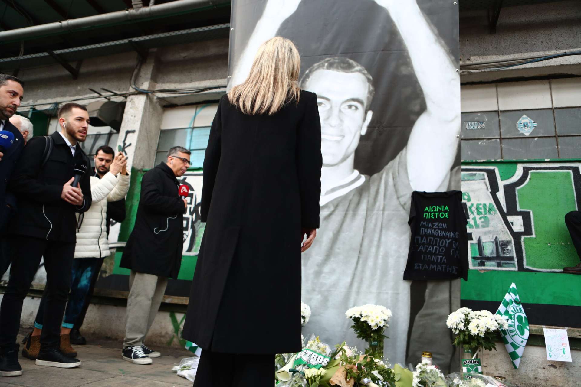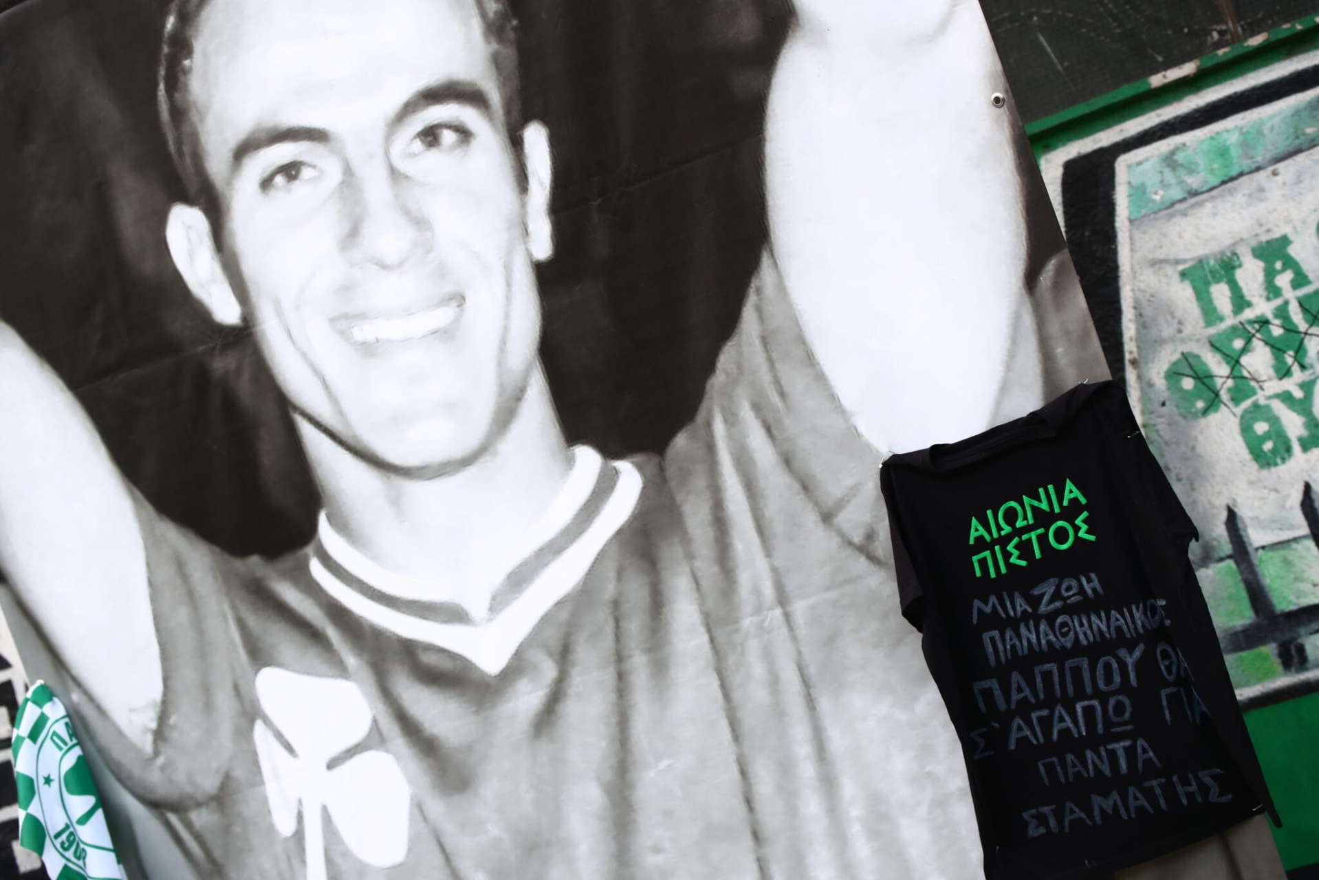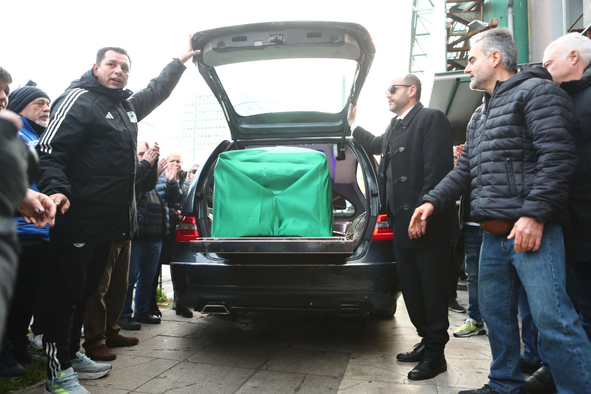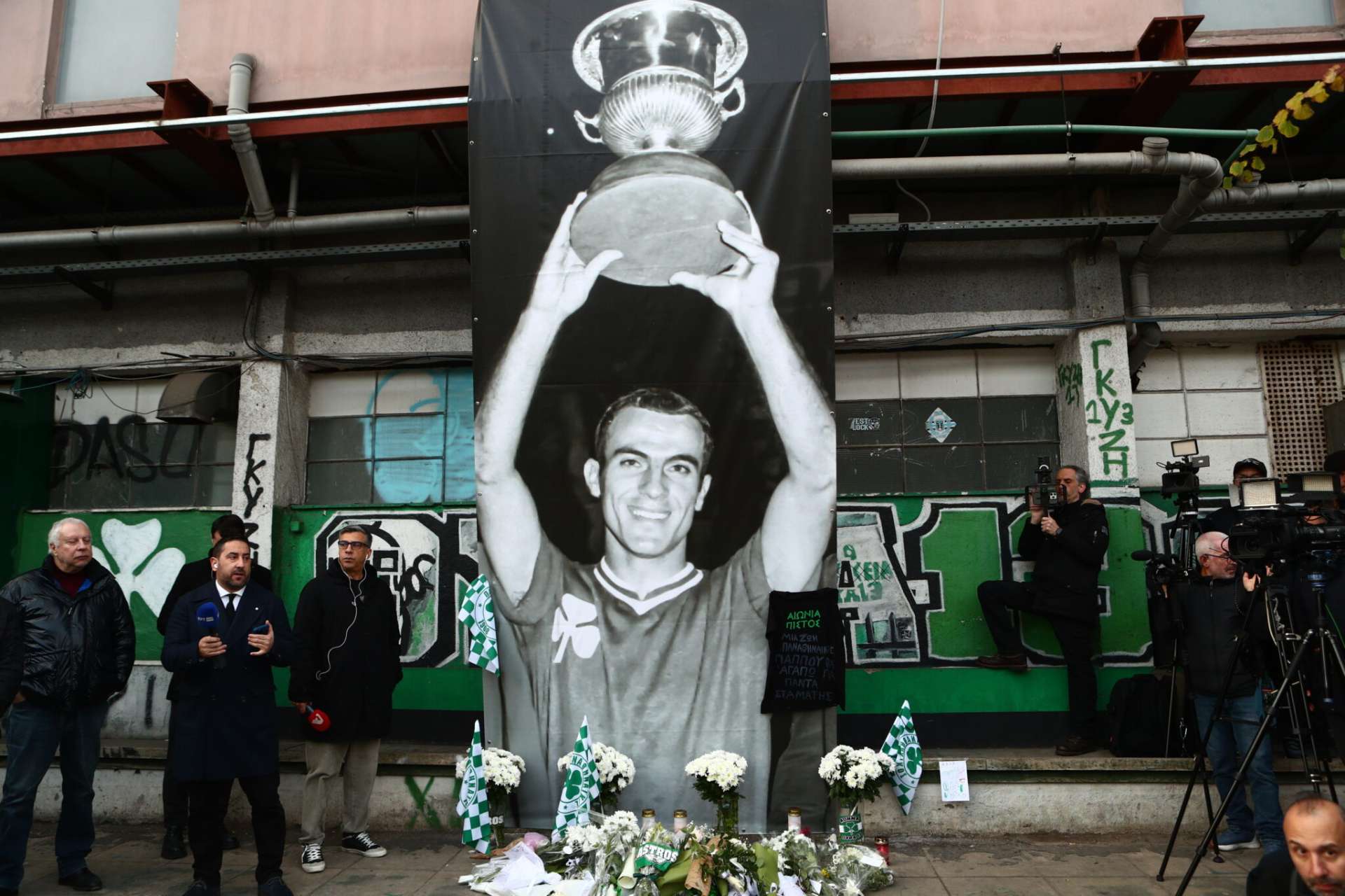 Η σορός του μεταφέρθηκε έξω από το γήπεδο της Λεωφόρου για μια τελευταία στάση λίγων λεπτών. Από τα μεγάφωνα του «Απόστολος Νικολαΐδης» ακουγόταν ο ύμνος του Παναθηναϊκού, ενώ στο μάτριξ βρισκόταν η εικόνα του «Στρατηγού». Εκεί τον περίμενε η κόρη του, Πόπη αλλά και φίλαθλοι, που θέλησαν να τον αποχαιρετήσουν, να αφήσουν ένα λουλούδι και να του πουν το τελευταίο αντίο.