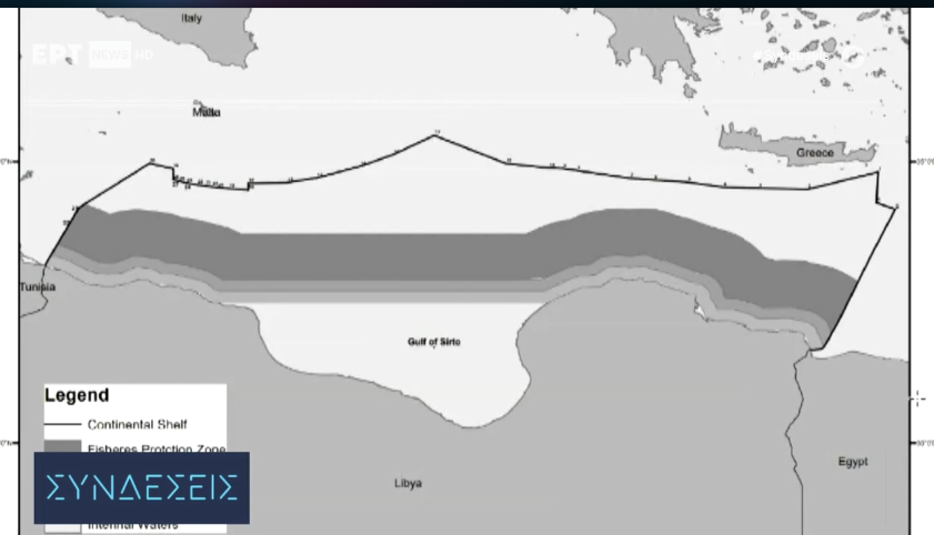 Ειδικότερα, στην πλήρη υιοθέτηση της τουρκικής προσέγγισης περί του τρόπου οριοθέτησης των θαλασσίων ζωνών στην Ανατολική Μεσόγειο, με βάση την αναθεωρητική λογική της «Γαλάζιας Πατρίδας» και των προβλέψεων του παράνομου τουρκολιβυκού μνημονίου, προχωρά η μεταβατική κυβέρνηση της Τρίπολης, καταθέτοντας μονομερώς στον Οργανισμό Ηνωμένων Εθνών τα όρια της λιβυκής υφαλοκρηπίδας μέσω ρηματικής διακοίνωσης.