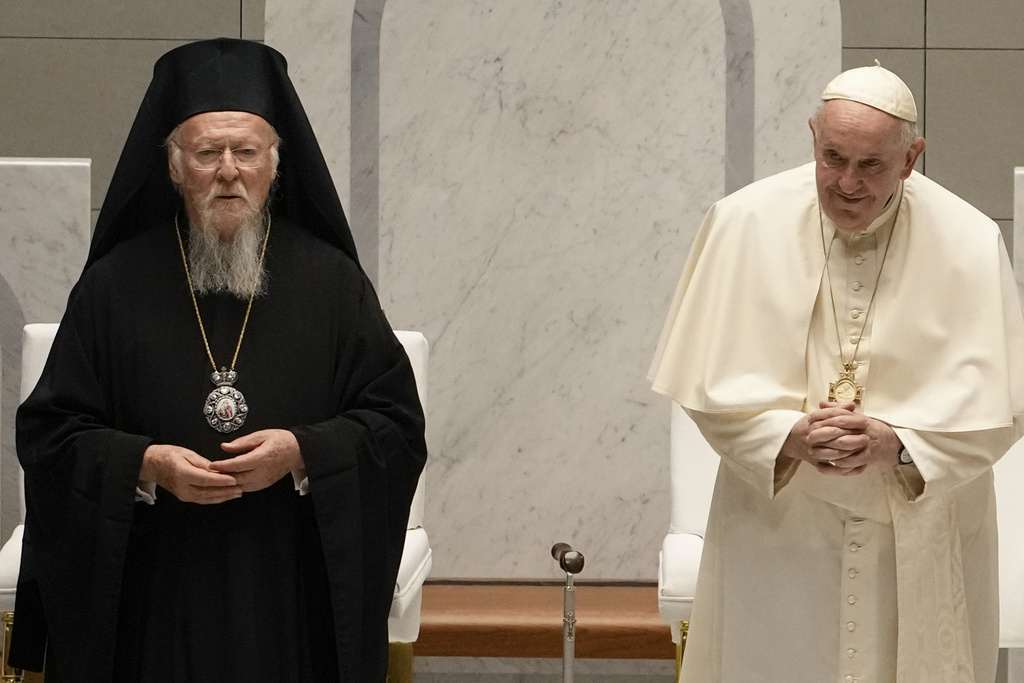 Σήμερα, που συναντόμεθα στο Οικουμενικό Πατριαρχείο με όλους του αρχιερείς του πανσέπτου Οικουμενικού Θρόνου τον εν Χριστώ Αναστάντι αδελφικό ασπασμό, μιμνησκόμεθα της προσφιλούς προσωπικότητος του μόλις κοιμηθέντος αδελφού Πάπα Φραγκίσκου και δεόμεθα όλοι μαζί εν ενί στόματι και μία καρδία για την ανάπαυση της ψυχής του εν χώρα ζώντων και εν σκηναίς δικαίων. Προσευχόμεθα να τον ανταμείψει ο Κύριος της ζωής και του θανάτου για τους πολλούς κόπους του για την Εκκλησία και τον Άνθρωπο και να αναδείξει επί του Θρόνου του Αγίου Πέτρου έναν άξιον διάδοχό του, ο οποίος θα ενστερνιστεί τα οράματα του Πάπα Φραγκίσκου και θα συνεχίσει το πολύτιμο έργο του για όλη την Ανθρωπότητα, ιδιαιτέρως για την Χριστιανιοσύνη και ακόμη ειδικότερα για την προσέγγιση των αδελφών εκκλησιών μας, με απότερον στόχον την πλήρη εν τω κοινώ ποτήριω συνάντησίν των.