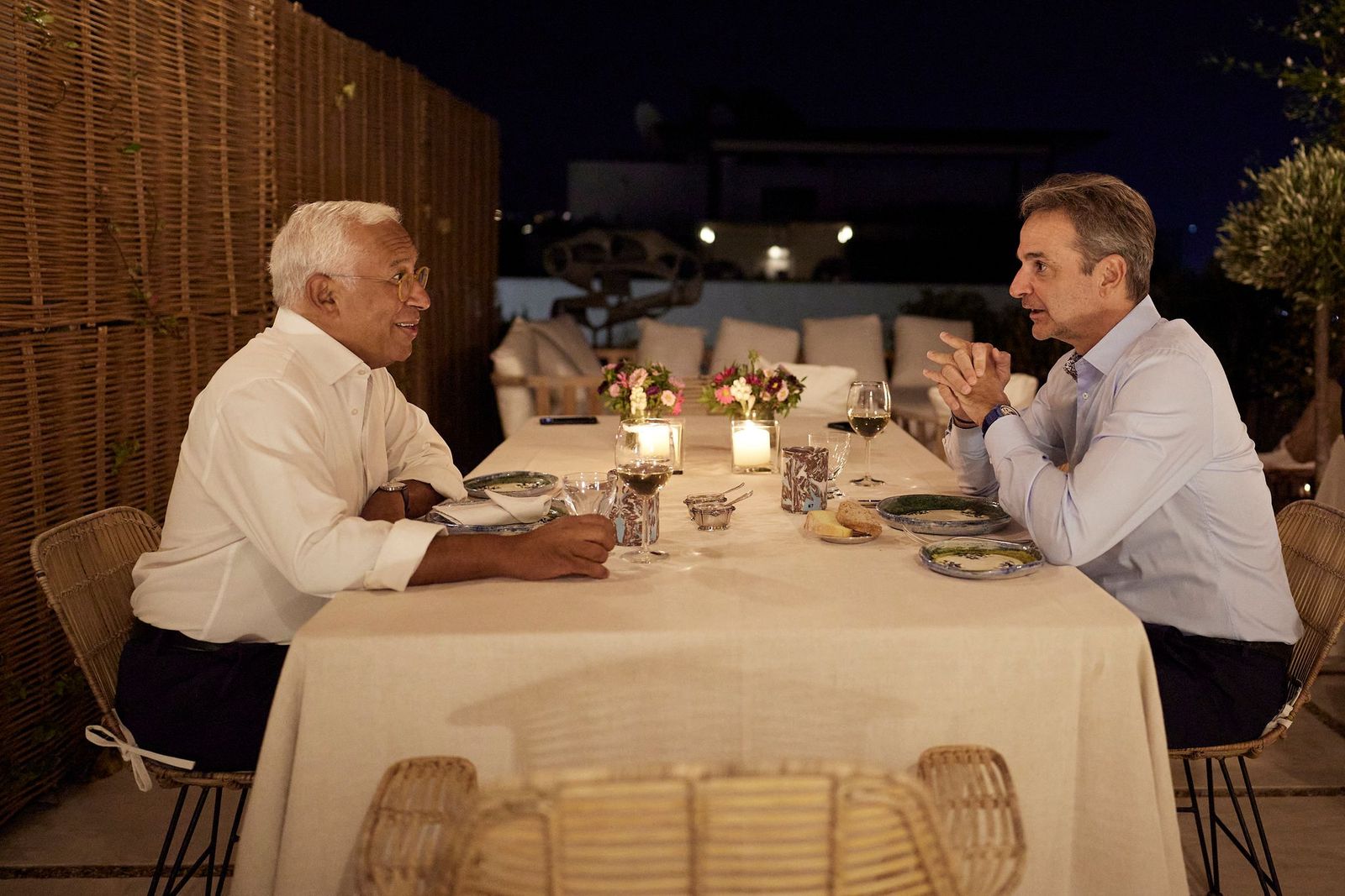 Το βράδυ της Κυριακής, ο πρωθυπουργός Κυριάκος Μητσοτάκης παρέθεσε δείπνο στην οικία του στον πρόεδρο του Ευρωπαϊκού Συμβουλίου, Αντόνιο Κόστα, κατά τη διάρκεια του οποίου οι δύο ηγέτες αντάλλαξαν απόψεις για τα τρέχοντα ζητήματα σε ένα πιο χαλαρό κλίμα.