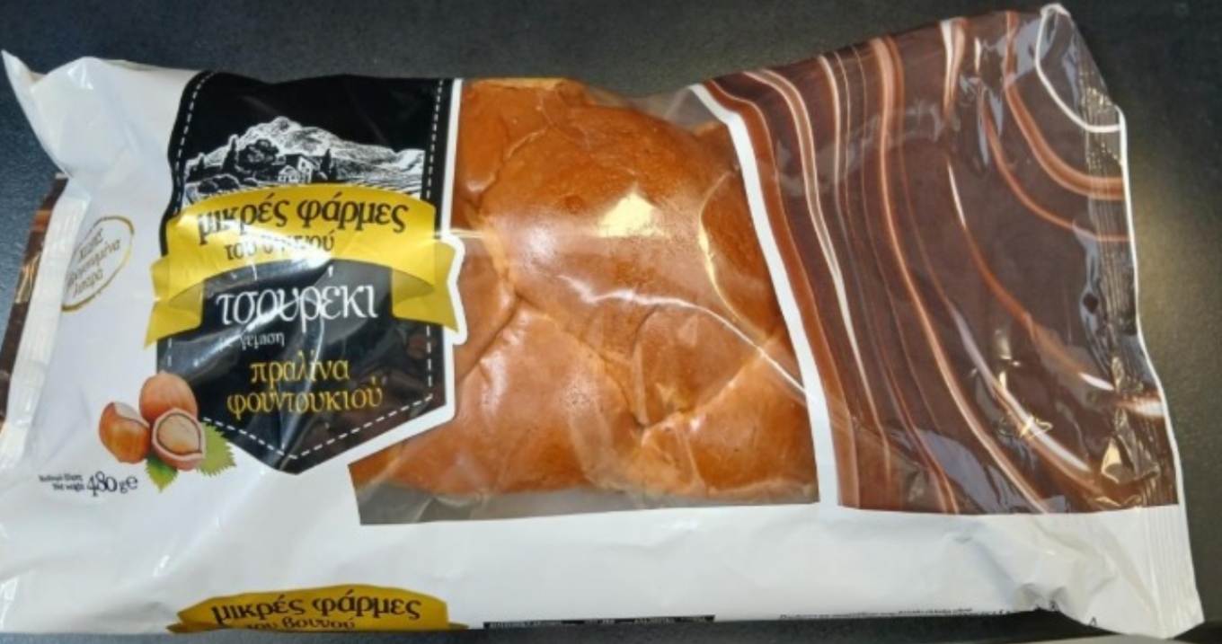 Παρτίδες από τσουρέκι με γέμιση πραλίνα φουντουκιού ανακαλεί από την αγορά ο Ενιαίος Φορέας Ελέγχου Τροφίμων.