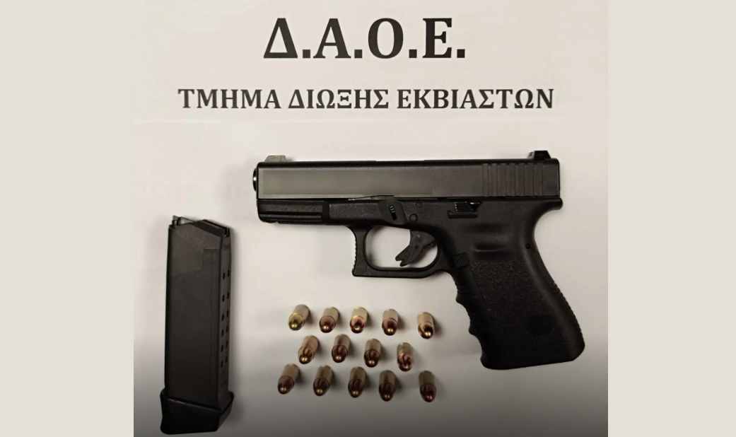 Στο πλαίσιο αυτό, εντοπίστηκε ο κατηγορούμενος, ο οποίος έφερε εντός τσάντας πιστόλι με γεμιστήρα που περιείχε 14 φυσίγγια, τα οποία κατασχέθηκαν.