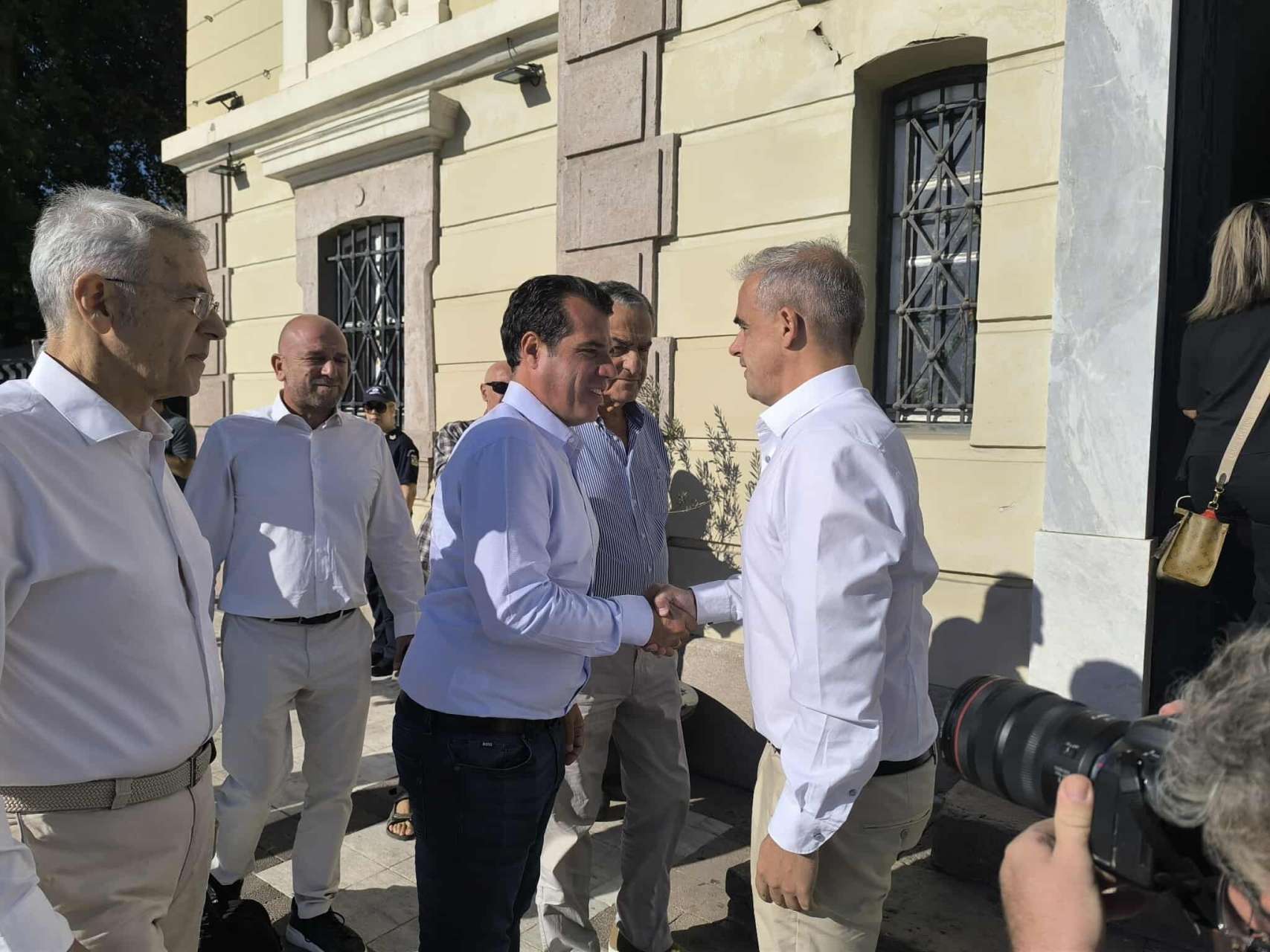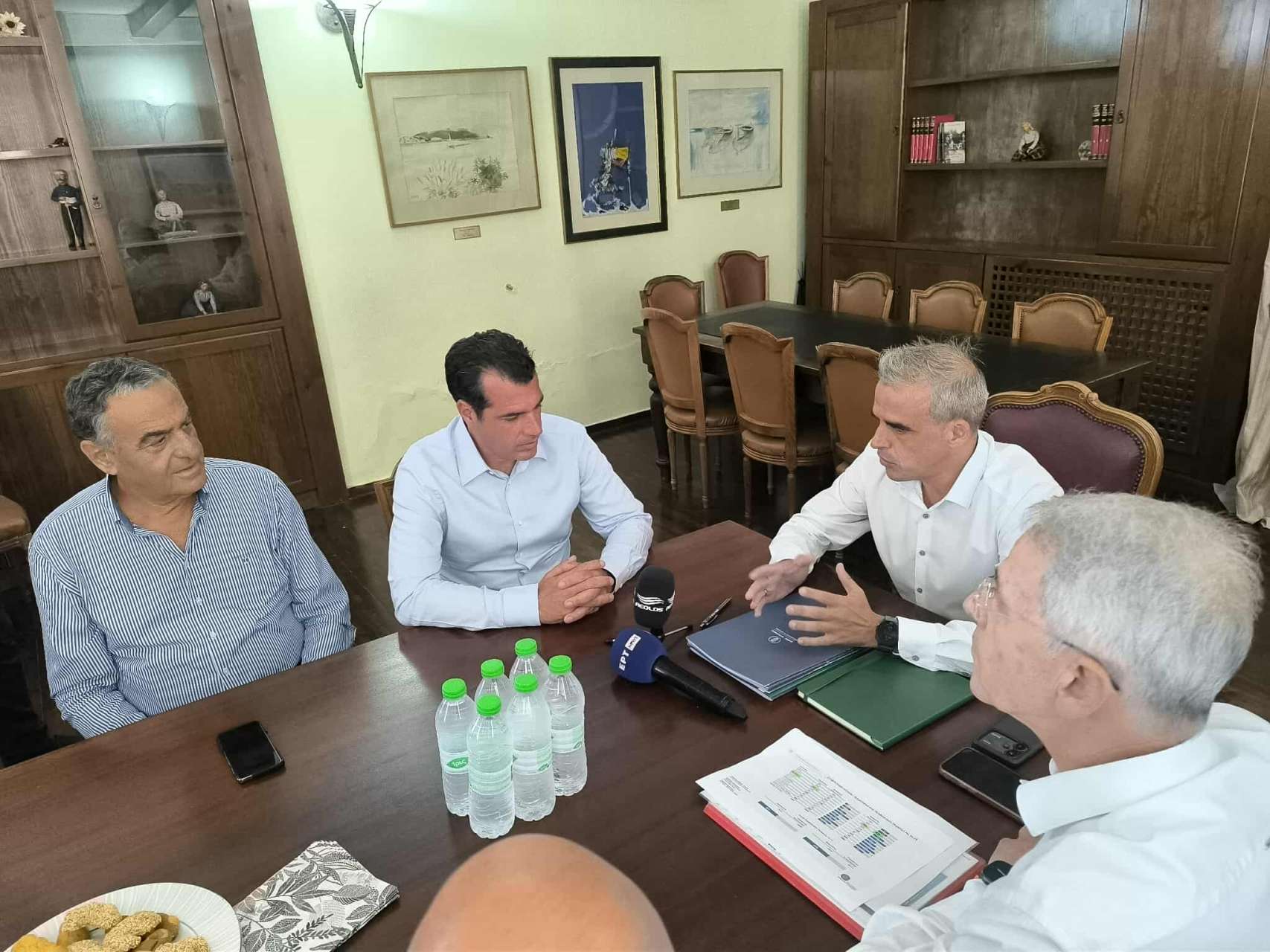 Στη συνέχεια ο υπουργός συναντήθηκε με τον Δήμαρχο Μυτιλήνης Παναγιώτη Χριστόφα και τους προέδρους των τοπικών κοινοτήτων στο Παλαιό Δημαρχείο,