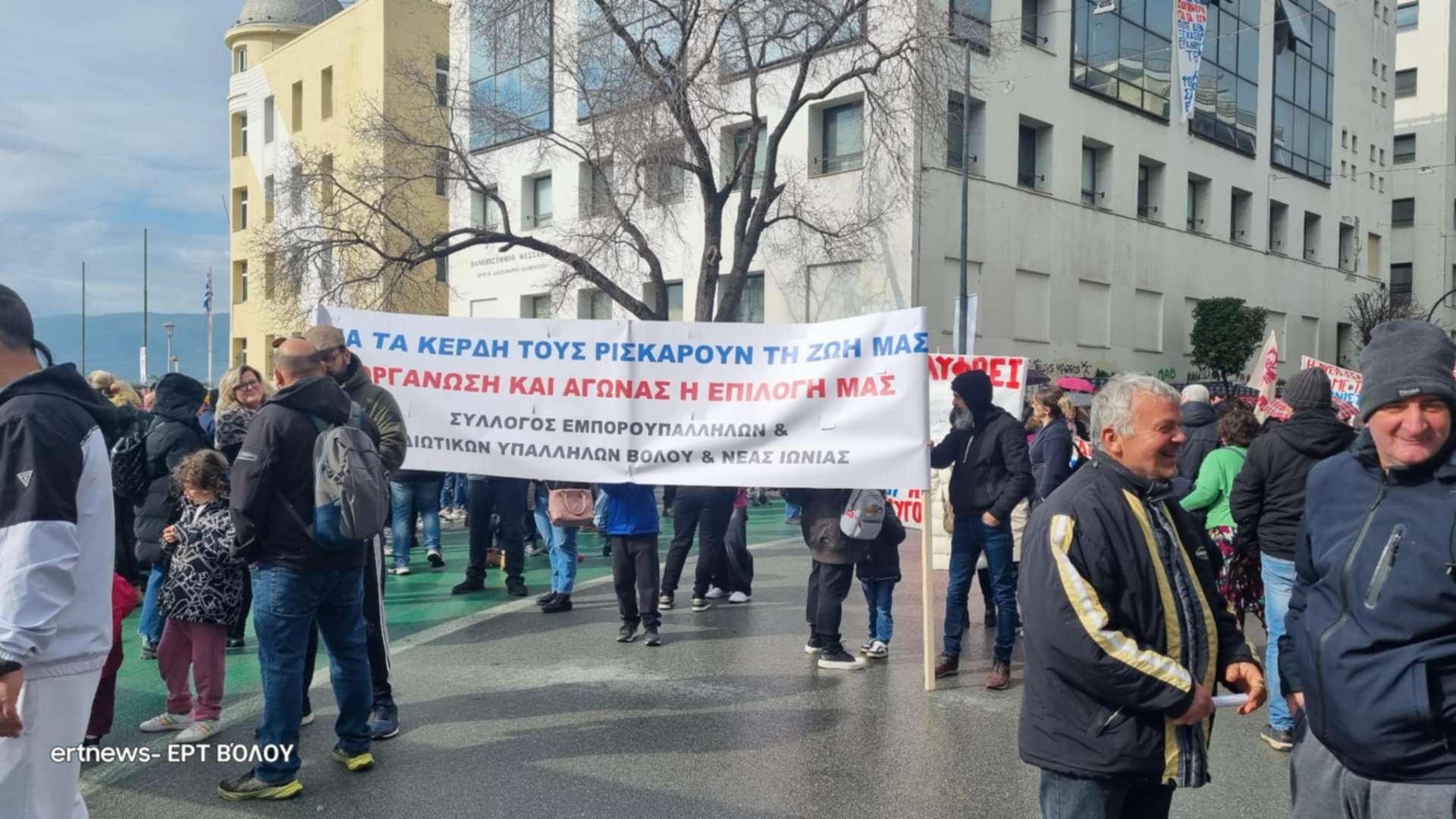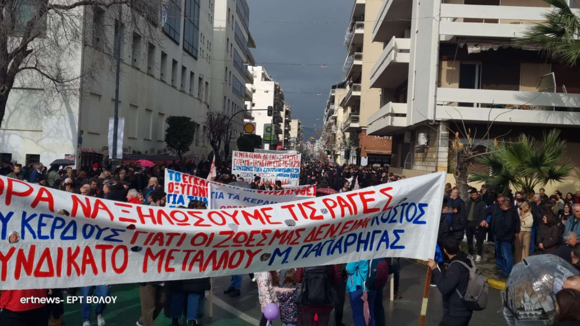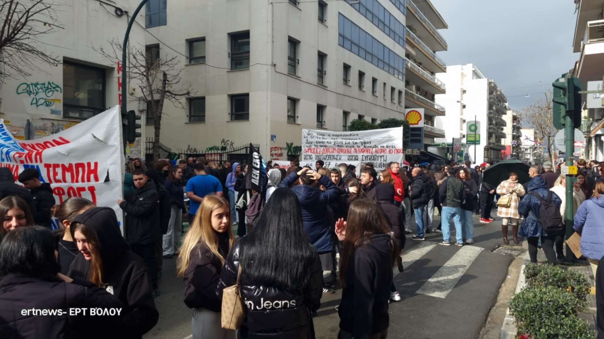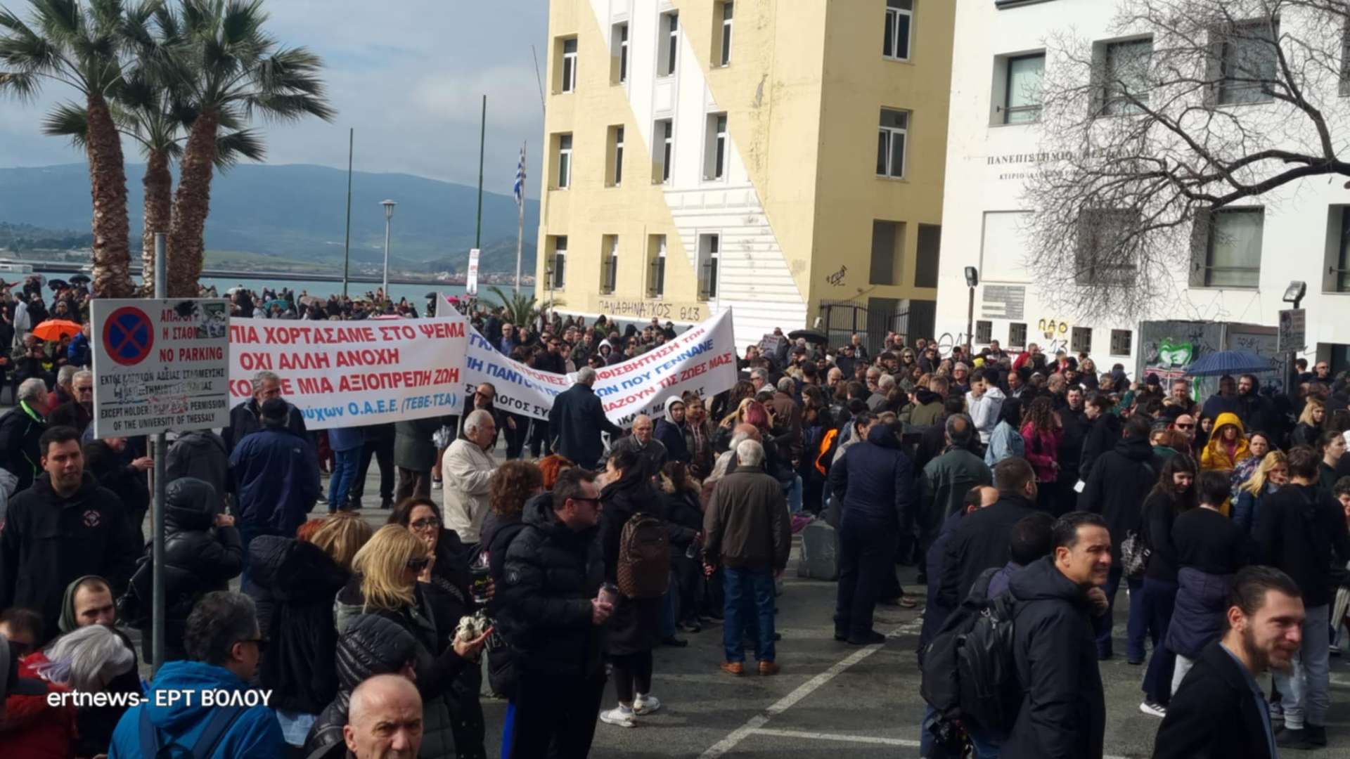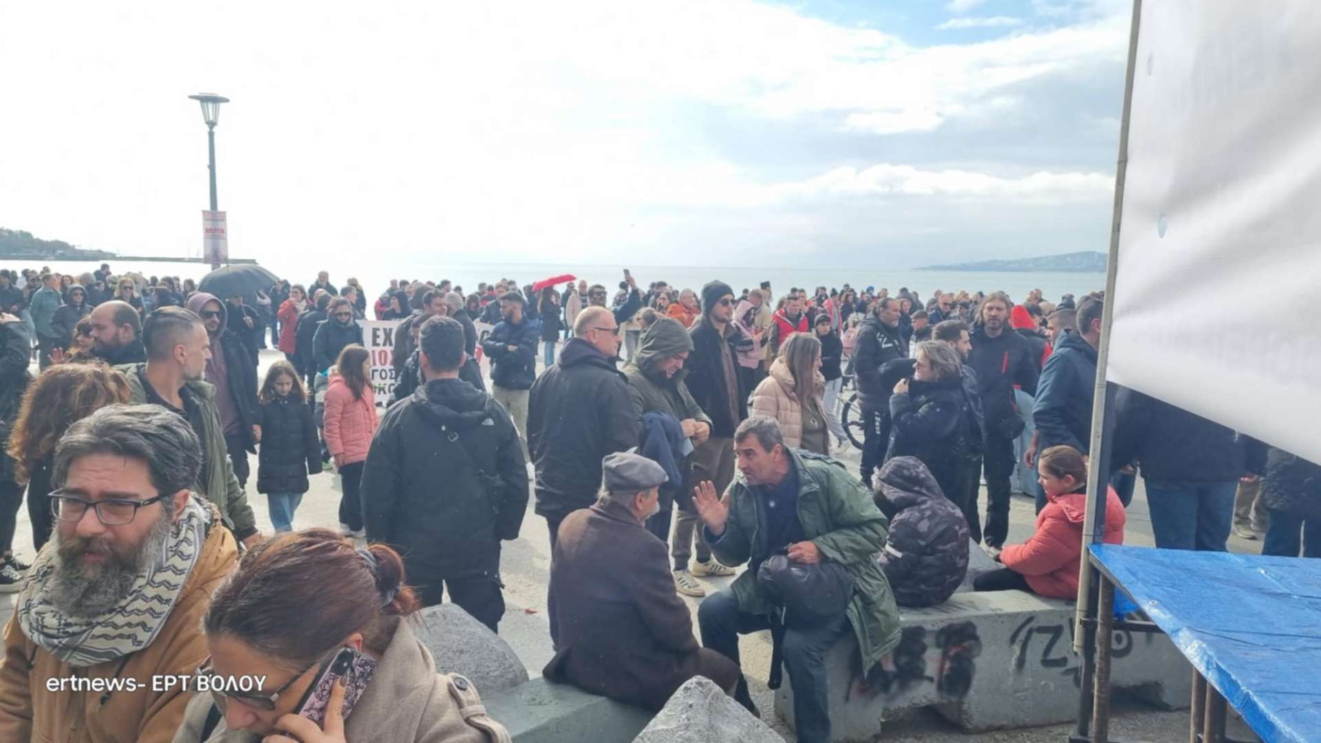 Πλήθος κόσμους συγκεντρώνεται από ώρα στην παραλία του Βόλου και στην οδό Ιάσονος στο ύψος του Πανεπιστημίου Θεσσαλίας. Φοιτητές, μαθητές, οικογένειες με παιδιά κόσμος που ΄”έρχεται από παντού” για να τιμήσει τους νεκρούς του τραγικού δυστυχήματος των Τεμπών, σε μια πόλη που κατά τα άλλα θυμίζει νεκρή πόλη με τα πάντα να είναι κλειστά.