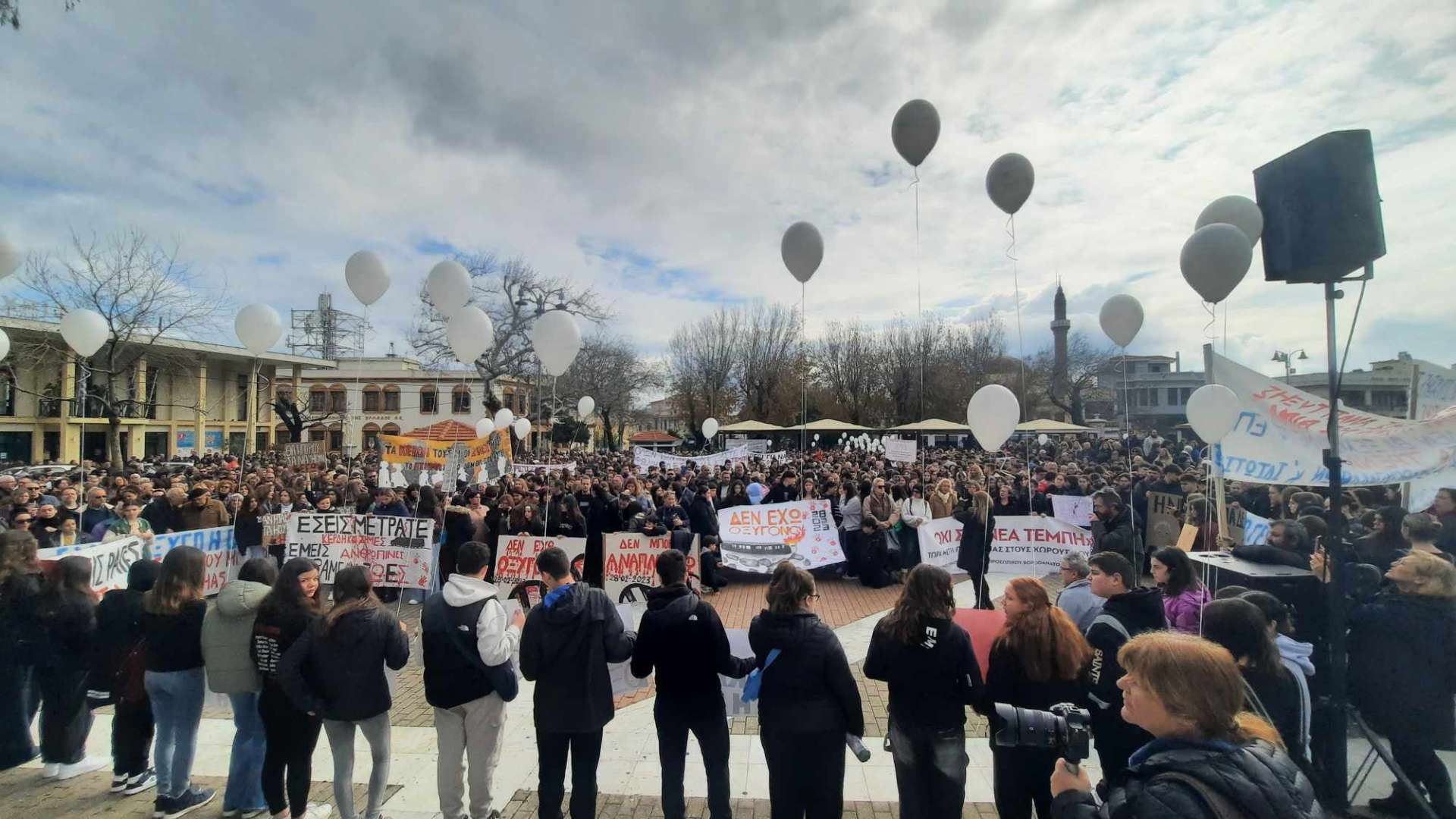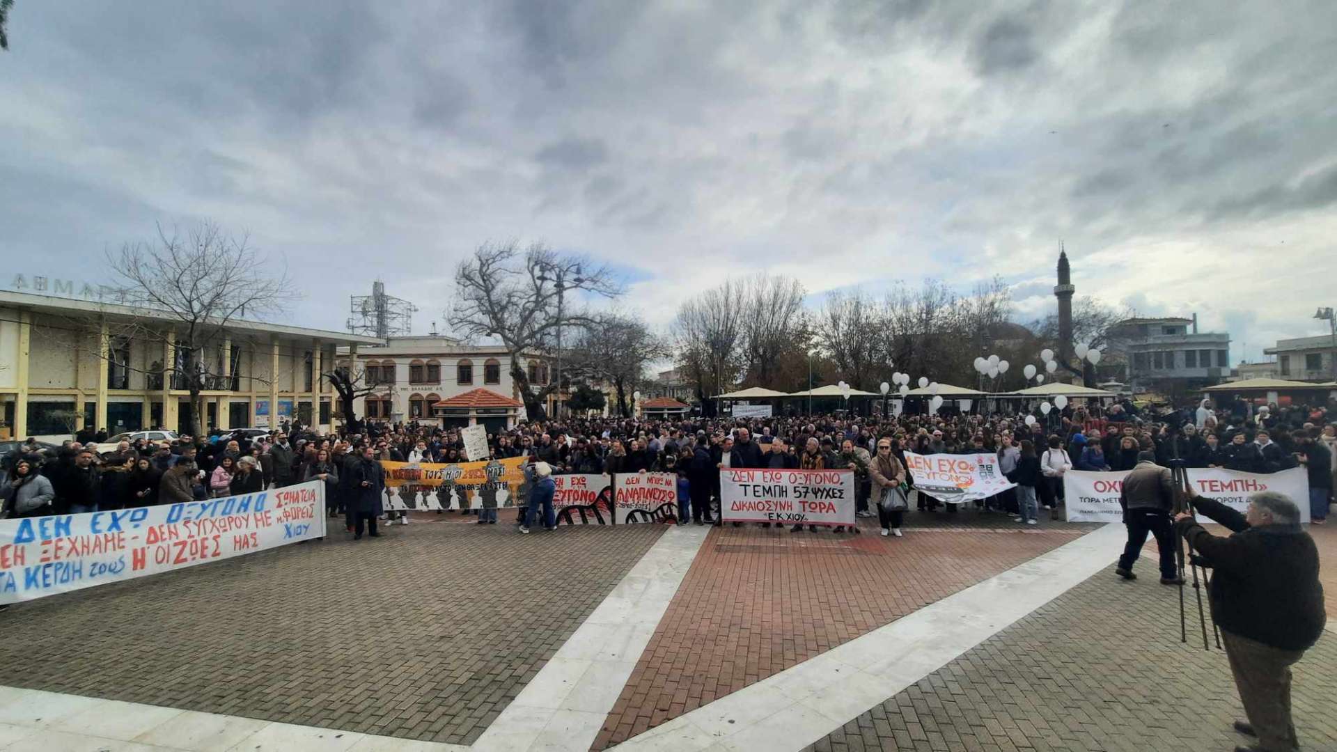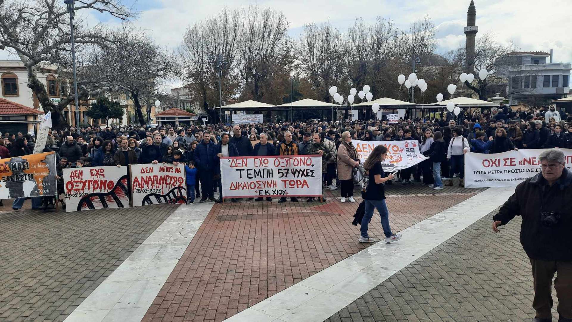 Πολυπληθής η συγκέντρωση για τα δύο χρόνια από την τραγωδία των Τεμπών στην Χίο