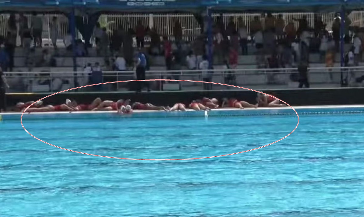 Gunshots were heard twice during the #China vs. #Canada U20 Water Polo World Championship match in Salvador, #Brazil. Initially unaware of the danger, players were alerted by referees to take cover at the poolside. After several minutes, the game resumed. pic.twitter.com/5OSIV2SS3w