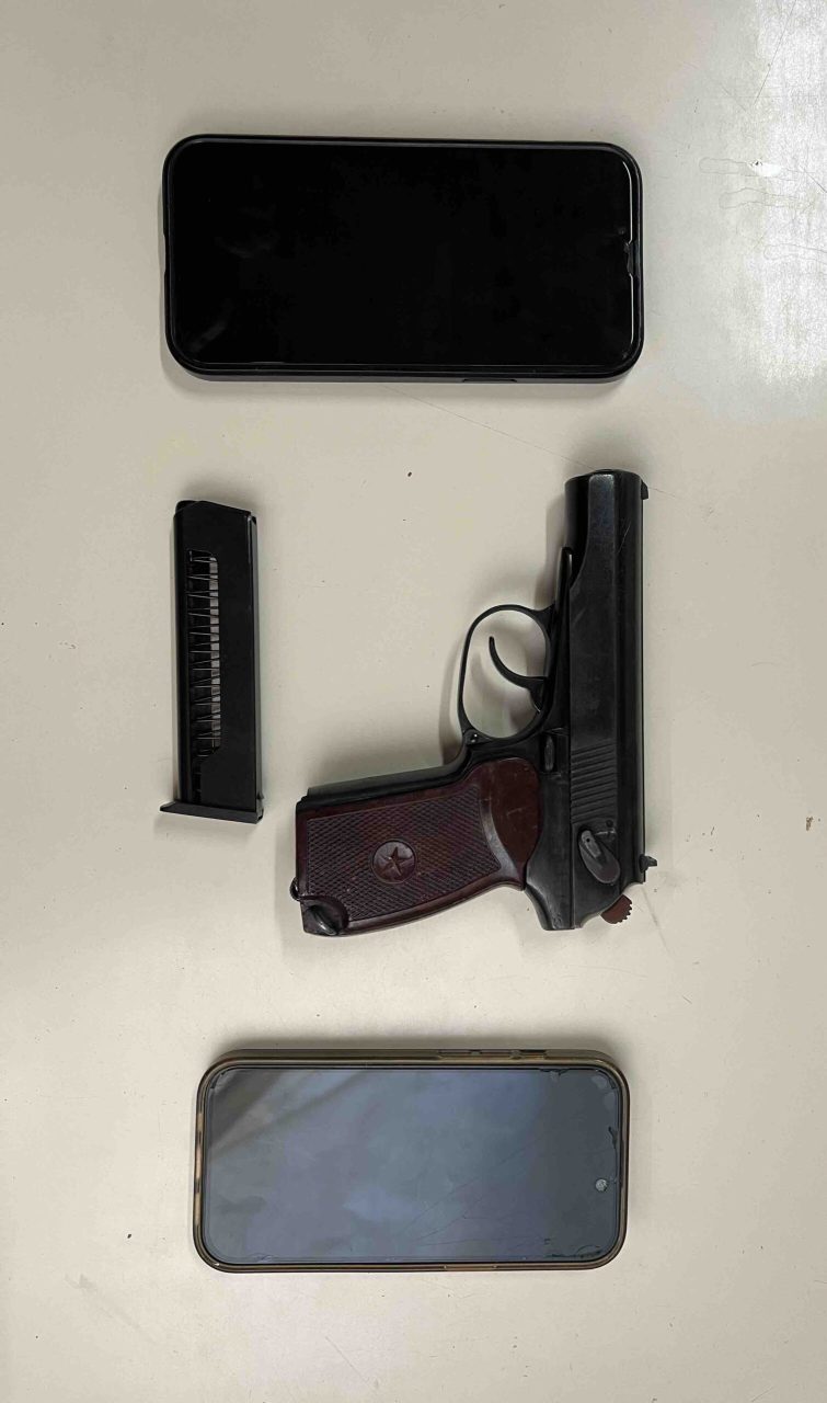 Σε έρευνες που ακολούθησαν στην οικία του 30χρονου, βρέθηκε και κατασχέθηκε πιστόλι με τον γεμιστήρα του και δύο φυσίγγια, ενώ επιπλέον κατασχέθηκαν δύο κινητά τηλέφωνα.