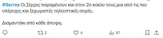 Οι χρήστες στο Χ σχολίασαν με ενθουσιασμό την επιστροφή της σειράς, η οποία αγαπήθηκε ιδιαίτερα από την LGBTQ+ κοινότητα αλλά και από το ευρύτερο κοινό, ανοίγοντας έναν διάλογο γύρω από τη διαφορετικότητα και τον τρόπο που αυτή καθρεφτίζεται μέσα από την ελληνική τηλεόραση.