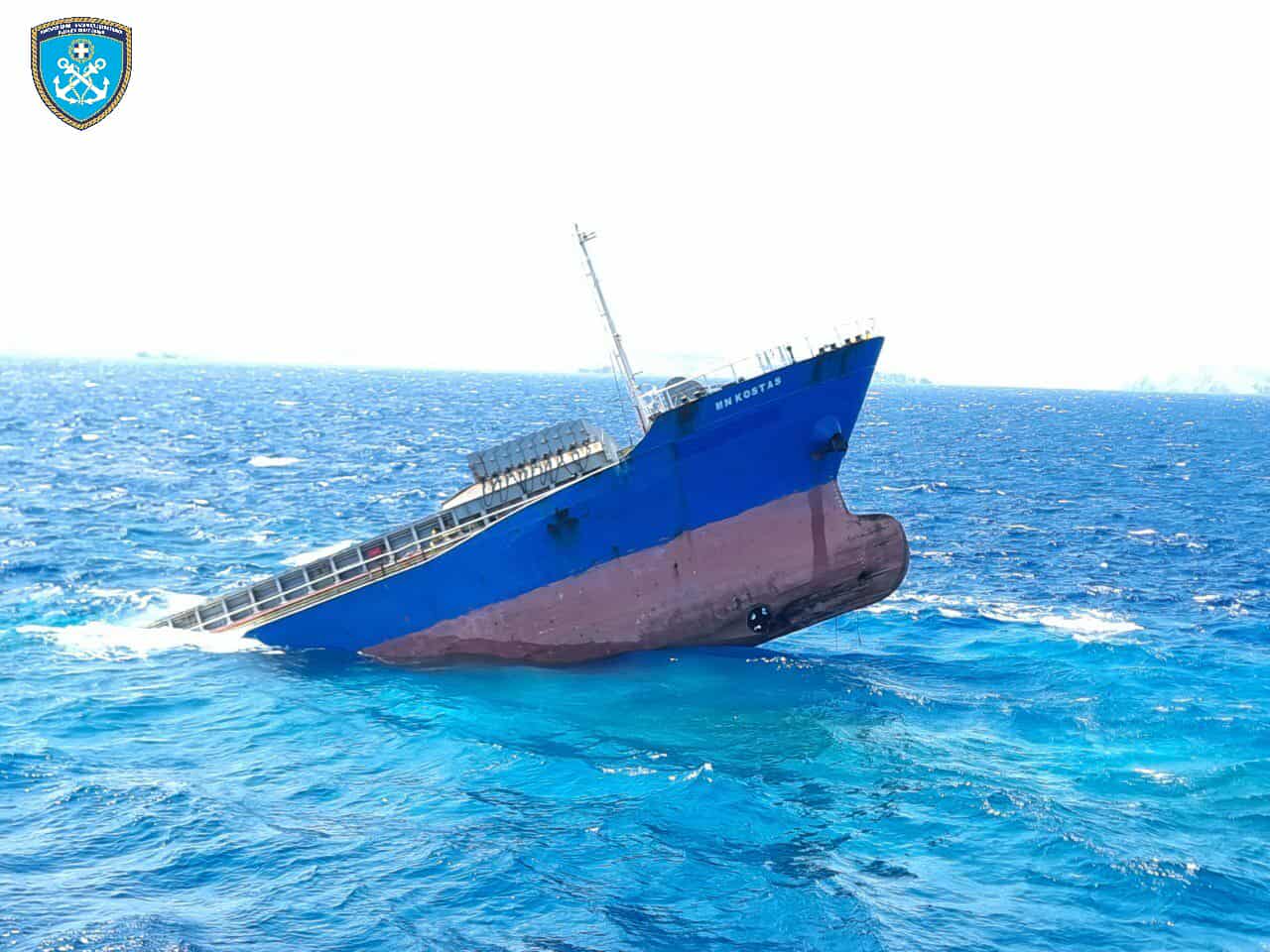 Έπειτα από εισροή υδάτων, η οποία έγινε αντιληπτή την περασμένη Κυριακή και την εμφανή κλίση που παρουσίασε την Τρίτη, το φορτηγό “ΜΝ Kostas” βυθίστηκε, το πρωί της Τετάρτης, με την πλώρη να προεξέχει στα αβαθή κοντά στο Κάβο Σίδερο.