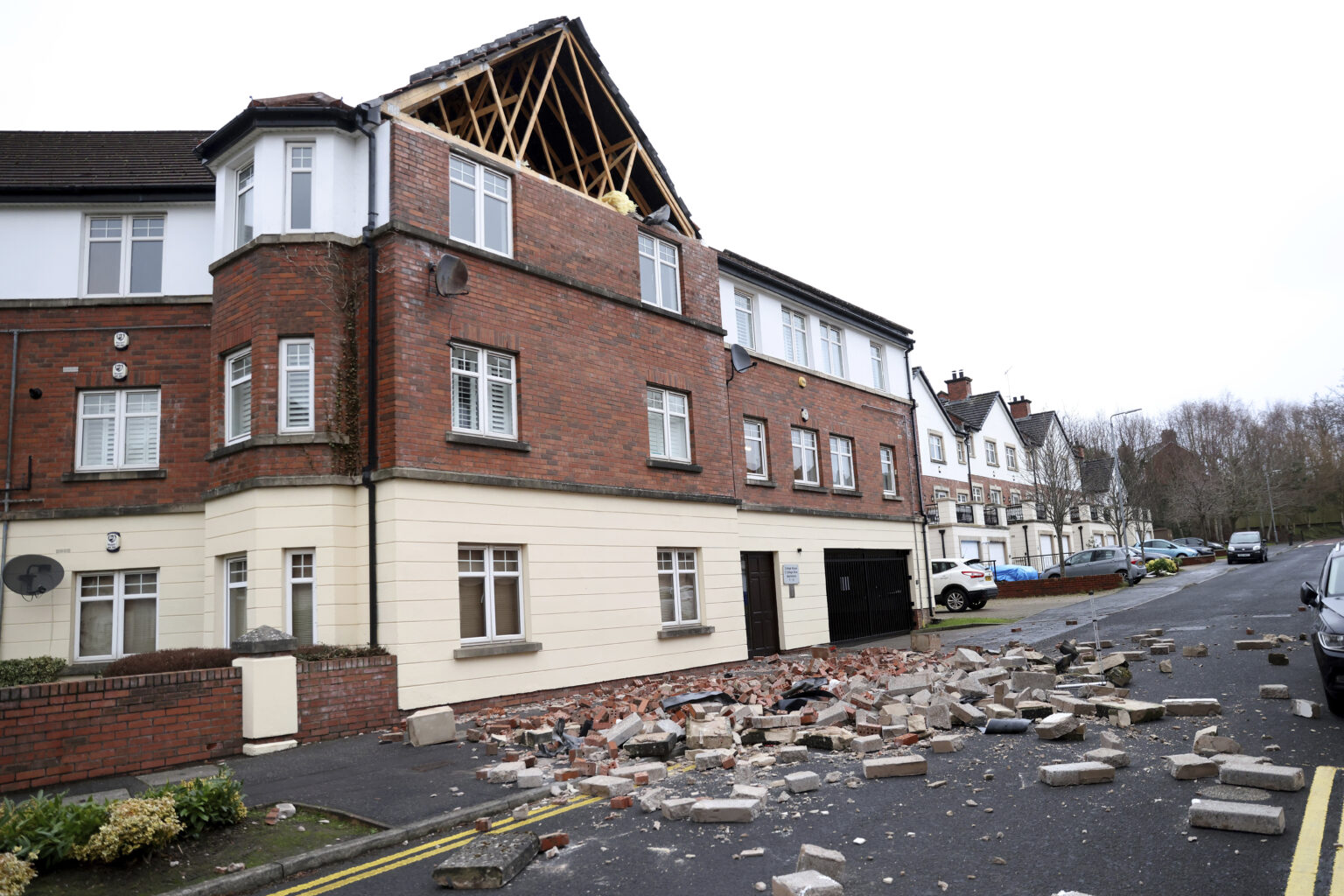 Στο πέρασμά της στην Ιρλανδία, η καταιγίδα Έογουιν παρέσυρε αντικείμενα και εκτίξευσε στον αέρα ολόκληρες κατασκευές.