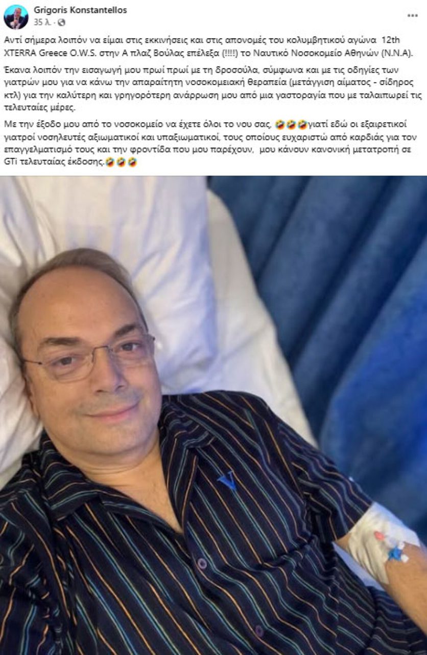 Στο Ναυτικό Νοσοκομείο Αθηνών ο Γρηγόρης Κωνσταντέλλος με γαστρορραγία