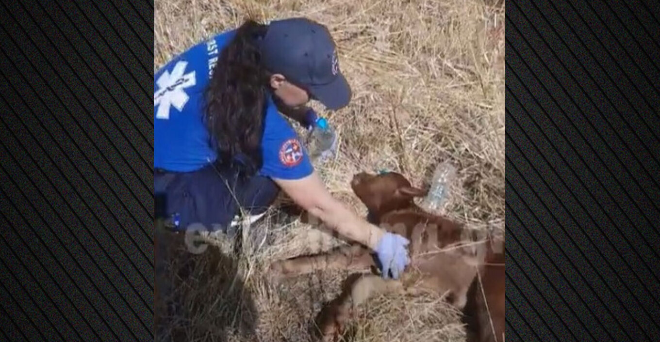 Όπως καταγράφεται σε βίντεο που δημοσιοποίησαν, οι εθελοντές εντόπισαν και παρείχαν πρώτες βοήθειες σε ένα νεογέννητο μοσχαράκι, το οποίο βρισκόταν εξ exhausted στο έδαφος. Του προσέφεραν νερό και φροντίδα, μέχρι να οργανωθεί η ασφαλής μεταφορά του σε κτηνίατρο, σε μία σκηνή που αποτυπώνει την ανάγκη προστασίας όλων των αδύναμων πλασμάτων που απειλούνται από τις φλόγες σε αυτές τις δύσκολες στιγμές.