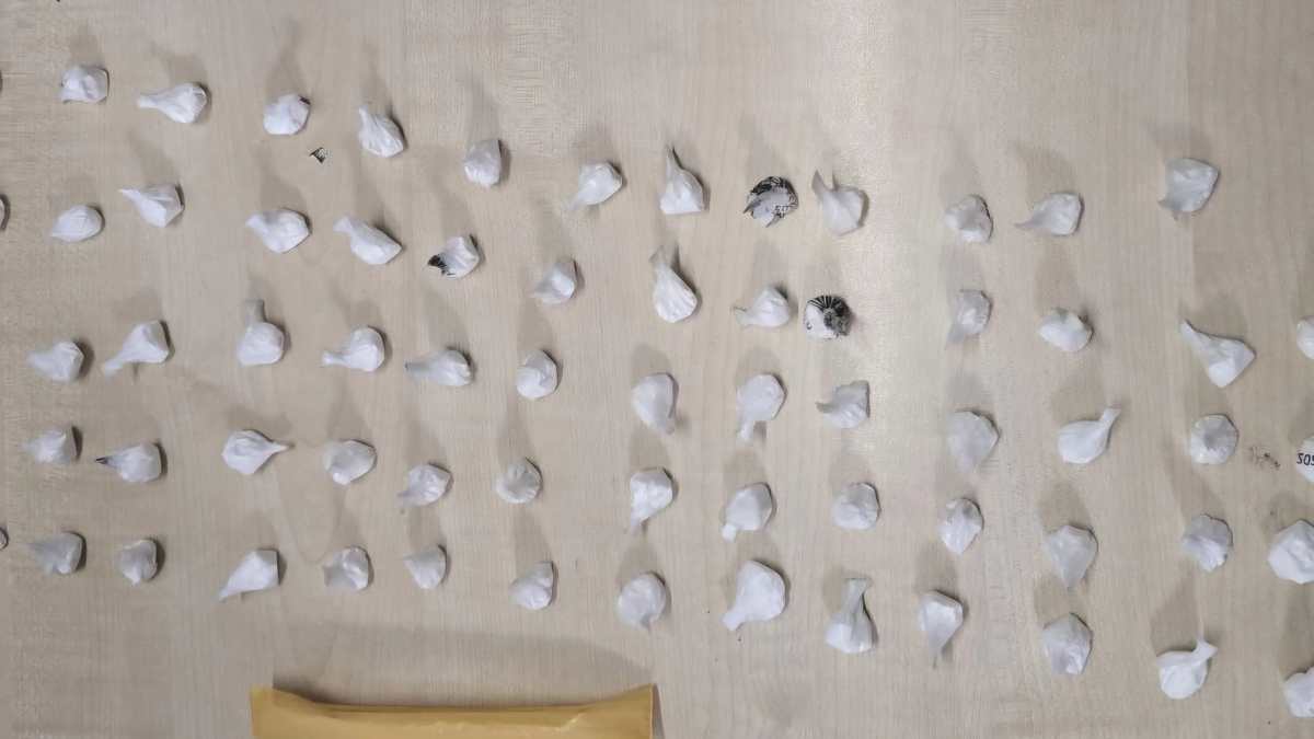 Κατά τον έλεγχο, ο 25χρονος απέρριψε στο έδαφος 4 νάιλον συσκευασίες κοκαΐνης, ενώ σε περαιτέρω έλεγχο στην οικία του, όπου βρίσκονταν και έτερη 25χρονη, βρέθηκαν και κατασχέθηκαν επιπλέον 65 συσκευασίες κοκαΐνης έτοιμες προς διακίνηση, συνολικού βάρους 65 γραμμ. κοκαΐνης.