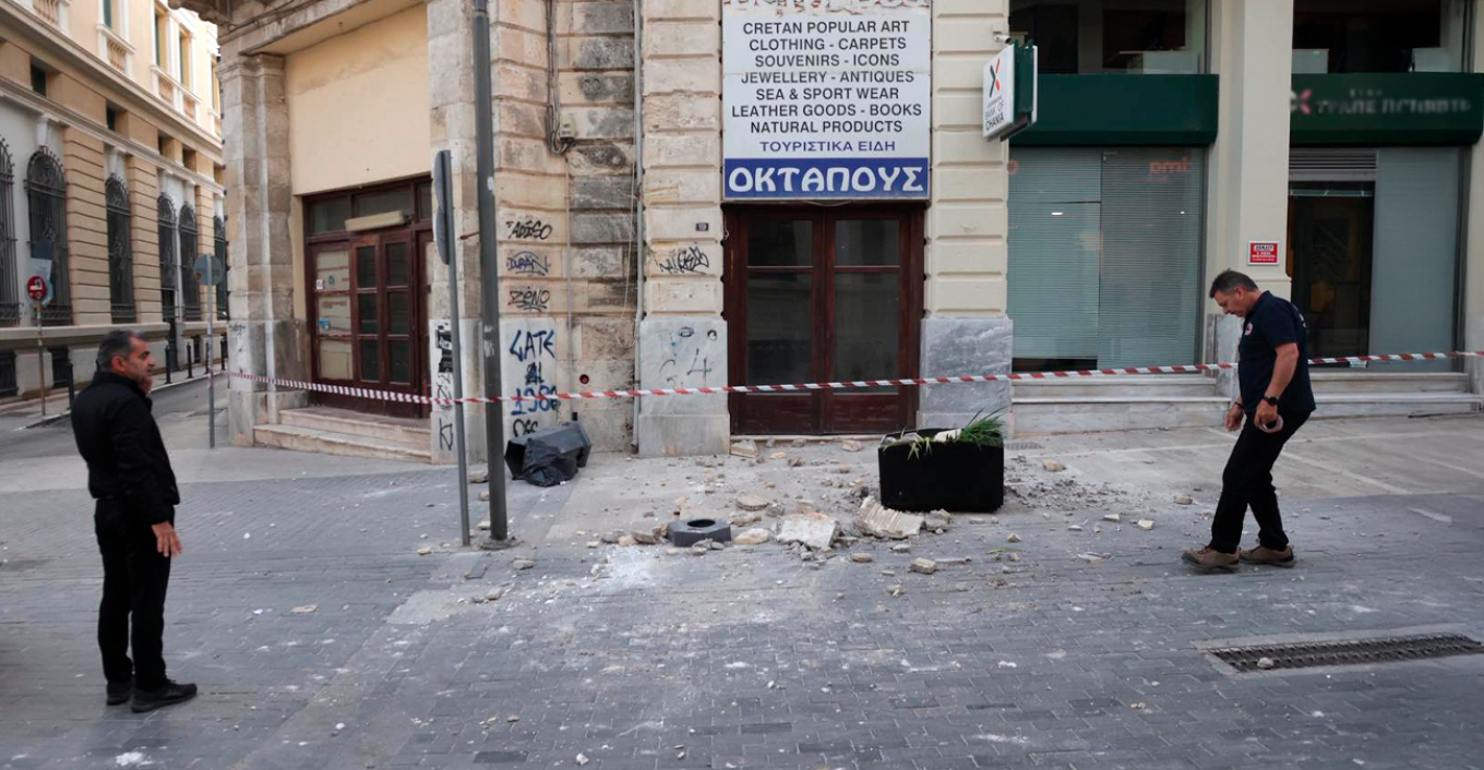 Τμήμα κτηρίου έπεσε στο Ηράκλειο στον πεζόδρομο της 25ης Αυγούστου. Άμεσα στο σημείο βρέθηκαν υπάλληλοι της δημοτικής αστυνομίας που απέκλεισαν τον χώρο ενώ εξετάζονται και άλλες περιοχές.