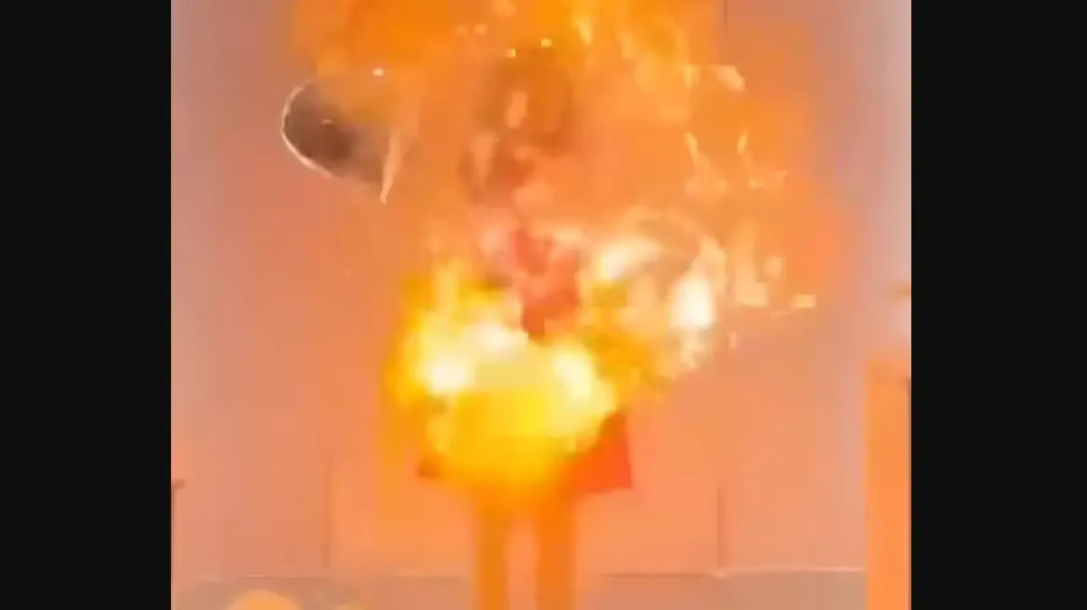 Στο βίντεο από τη στιγμή του ατυχήματος, φαίνεται η 33χρονη Τζιάνγκ Παμ να κρατάει την τούρτα της με αναμμένα τα κεράκια, όταν πάνω τους ακουμπάει ένα μεγάλο μπαλόνι με υδρογόνο.