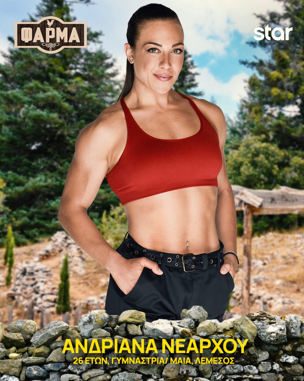 Ανταγωνιστική, δυναμική και με ξεκάθαρους στόχους, μπαίνει στη Φάρμα με τη διάθεση να παλέψει σκληρά για τη νίκη. Γιατί ακόμα και αν έχει ισχυρούς αντιπάλους, η προσωπικότητα μετράει εξίσου με τη φυσική δύναμη. Άλλωστε δεν θέλει να αποδείξει κάτι στους άλλους, αλλά να γνωρίσει τον εαυτό της μέσα από τις πιο αληθινές και απρόβλεπτες συνθήκες. Και αυτό, τελικά, είναι ίσως το πιο δυνατό της «όπλο» για τη νίκη!