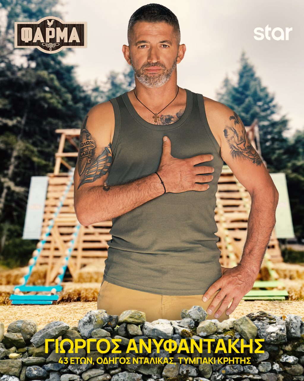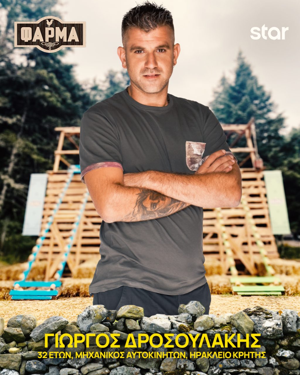 Ο Γιώργος δεν χρειάζεται πολλά λόγια για να ξεχωρίσει. Αρκεί ένα χαμόγελο, το λευκό του σαρίκι και μια μαντινάδα για να καταλάβεις ότι έχεις μπροστά σου έναν γνήσιο Κρητικό. Οδηγός νταλίκας, πρώην βοσκός, με εμπειρία σε αγροτικές καλλιέργειες, ηγετικός και ατρόμητος, στη Φάρμα νιώθει στο στοιχείο του.