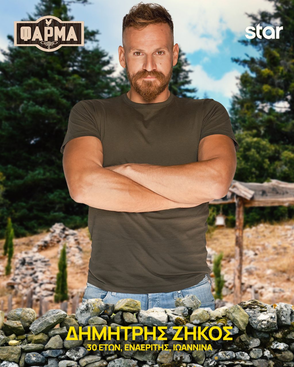 Με καταγωγή από τα Ιωάννινα και εναερίτης στο επάγγελμα, ο Δημήτρης έχει μάθει να βλέπει τη θέα από ψηλά και αυτή τη φορά έχει λαχτάρα να δει τη θέα από την κορυφή της Φάρμας. Στη Φάρμα δεν σκοπεύει να μείνει θεατής, αλλά να ηγηθεί. Η αρχηγία, όμως, δεν είναι για εκείνον θέμα εγωισμού, αλλά ευθύνης. Και πιστεύει πως μπορεί να διοικήσει σωστά την ομάδα του.