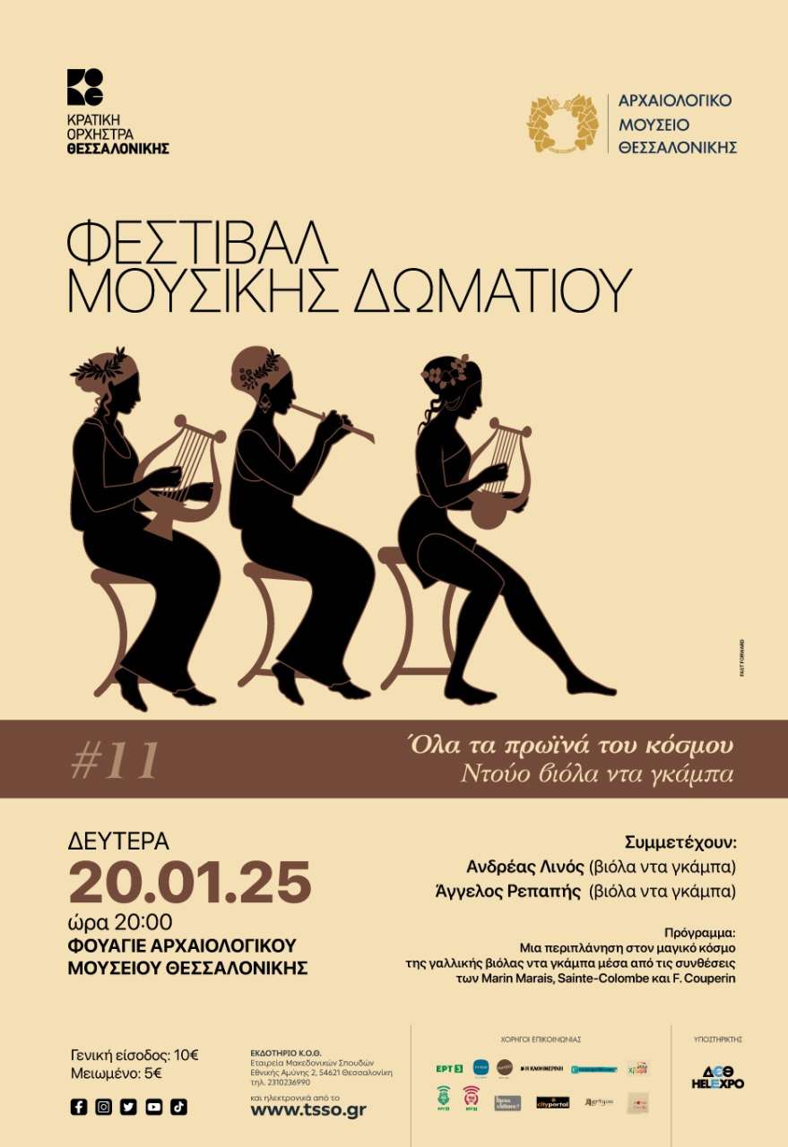 Το Φεστιβάλ Μουσικής Δωματίου που συνδιοργανώνουν η Κρατική Ορχήστρα Θεσσαλονίκης και το Αρχαιολογικό Μουσείο Θεσσαλονίκης, με την υποστήριξη του Υπουργείου Πολιτισμού, συνεχίζεται και τη νέα χρονιά, αφού έχει αγκαλιαστεί με θέρμη από το κοινό της πόλης, που γεμίζει ασφυκτικά το φουαγιέ του Μουσείου σε κάθε σχετική εκδήλωση.
