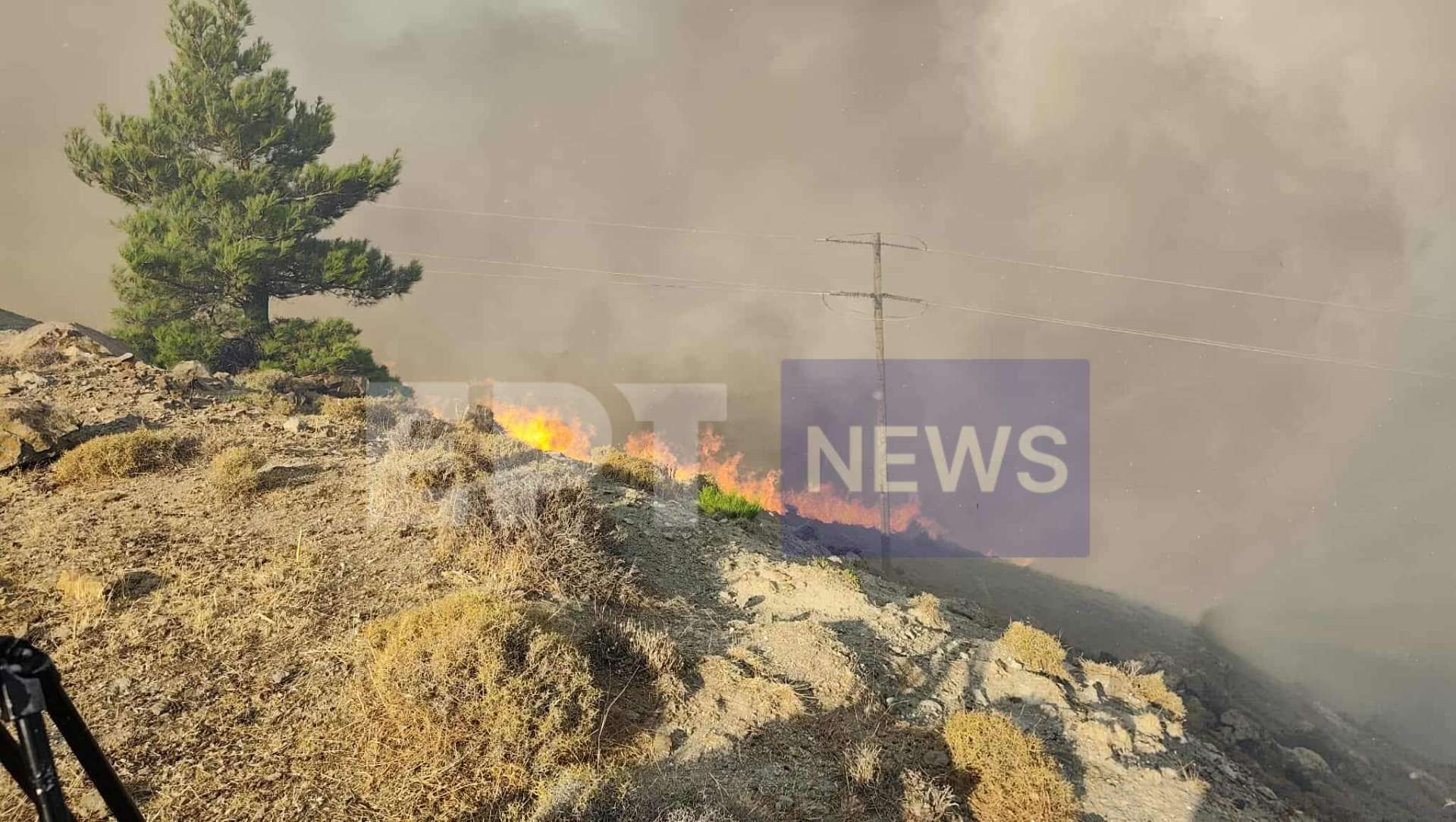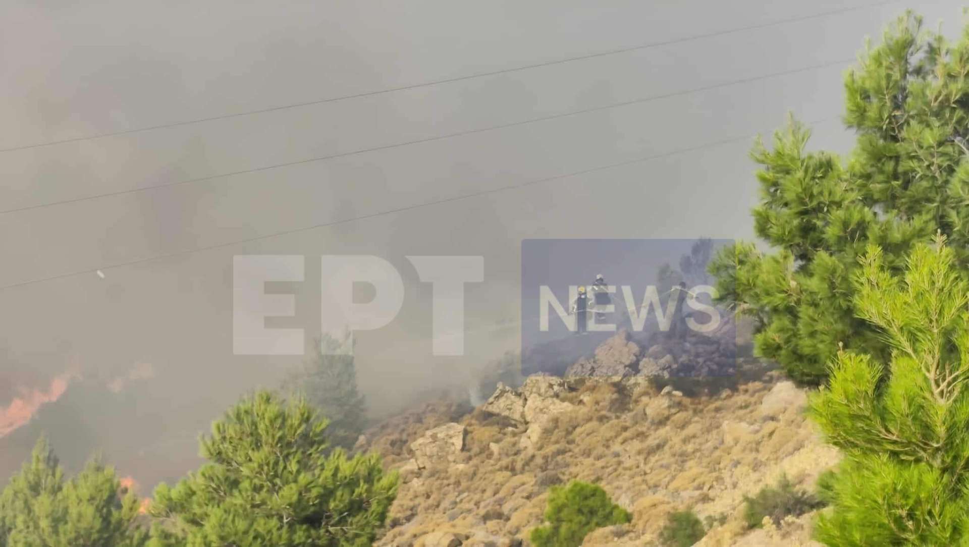 Σε εξέλιξη είναι η πυρκαγιά στη Χίο, σε δύο μέτωπα, ενώ στην περιοχή πνέουν ισχυροί άνεμοι εντάσεως 6 μποφόρ.