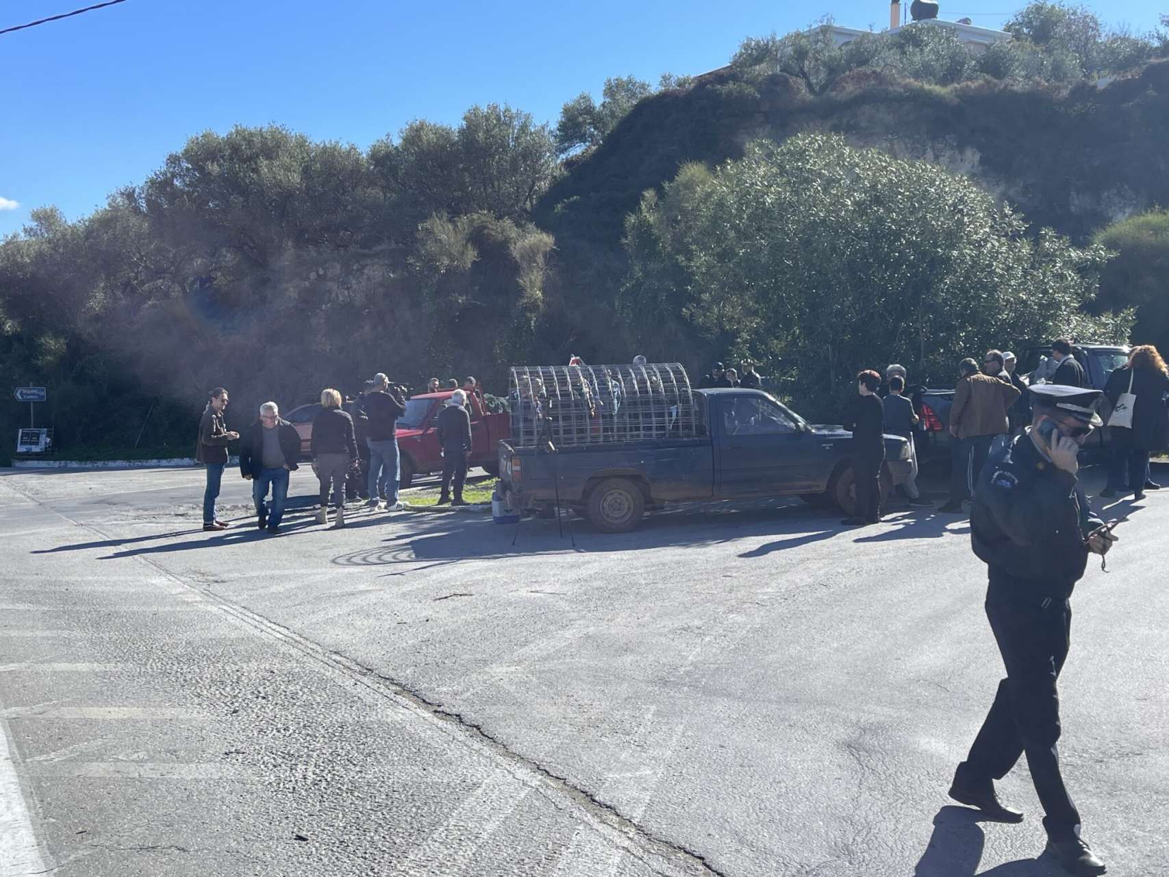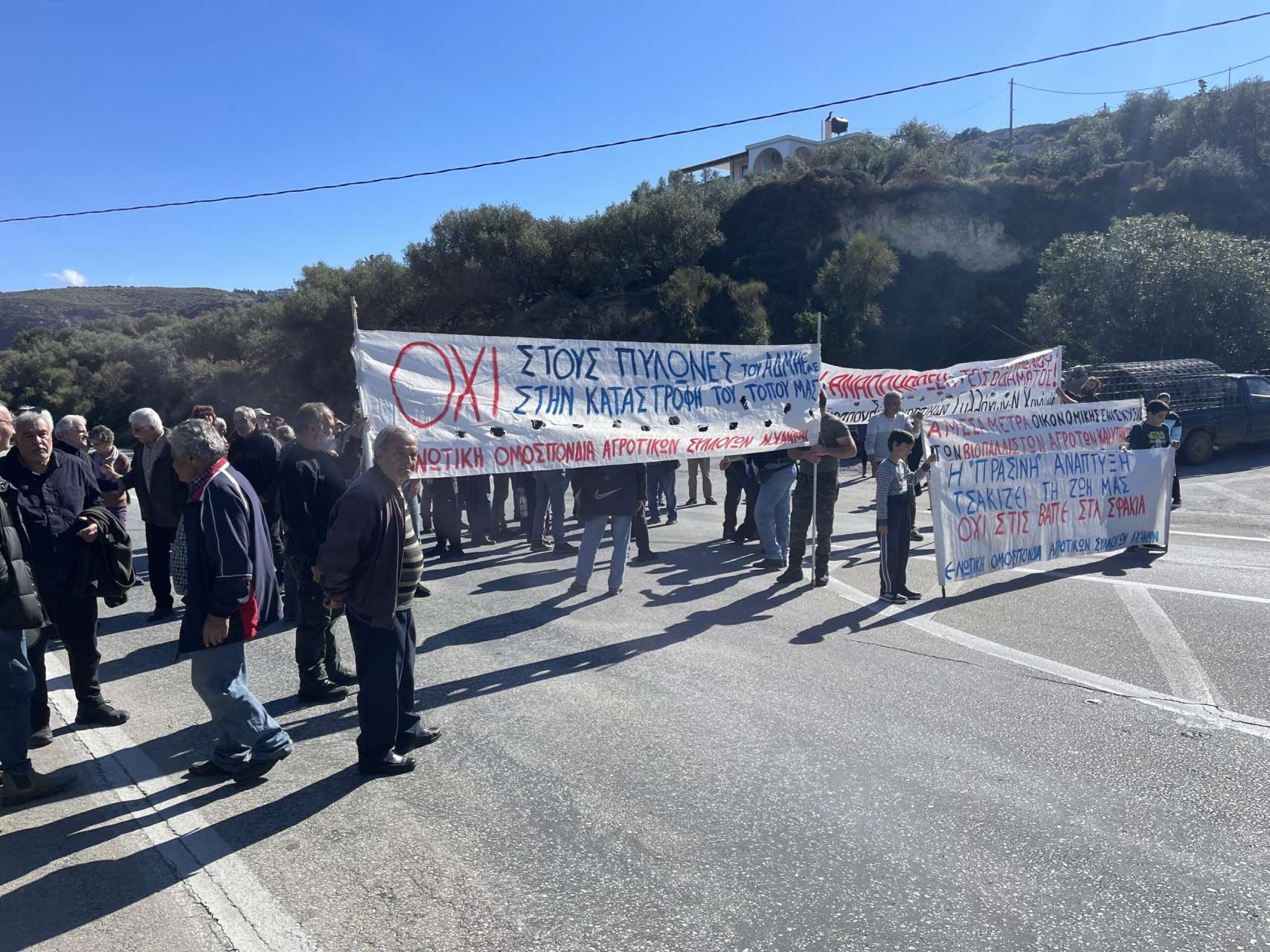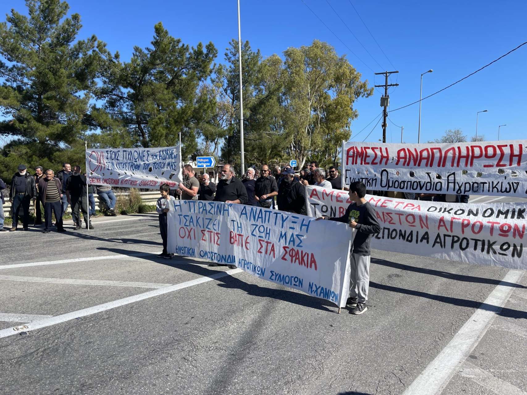 Το μεσημέρι της Κυριακής, οι διαμαρτυρόμενοι απέκλεισαν για λίγη ώρα την κυκλοφορία στην Εθνική οδό Χανίων-Ρεθύμνης, στο ύψος του κόμβου στα Μεγάλα Χωράφια, όπου έχουν στήσει μπλόκο, με πανό και συνθήματα.