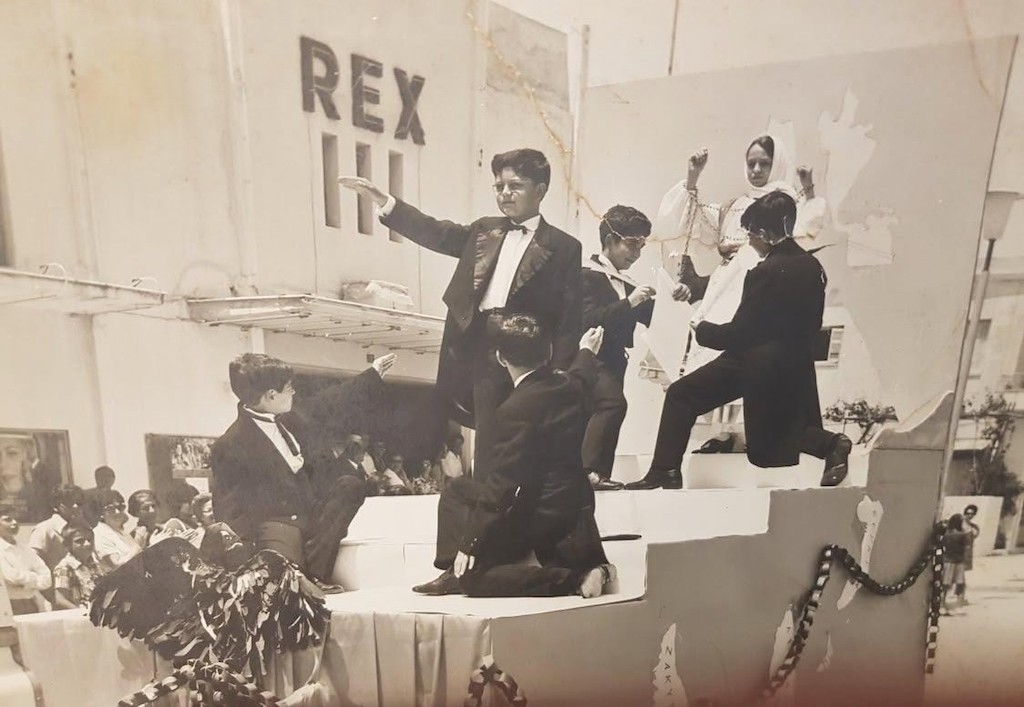 Ήταν 21/5/1973 όταν οι μαθητές και οι μαθήτριες έδωσαν ζωή στην ιστορία, μέσα από μια επετειακή αναπαράσταση που έμεινε αξέχαστη. Κάτω αριστερά διακρίνεται ο Στάθης Σιμάτος και δίπλα του, κάτω δεξιά, ο Τάκης Καζιάνης. Πάνω αριστερά, ο γραφέας Γεράσιμος Κουρβισιάνος και πάνω δεξιά, ο επίσης γραφέας Αλέξανδρος Αντωνάτος. Όρθιος στον ρόλο του Γεώργιου Λιβαδά, ο Βασίλης Λορεντζάτος. Στον ρόλο της Επτανήσου, η Όλγα Τζουβανάκη.